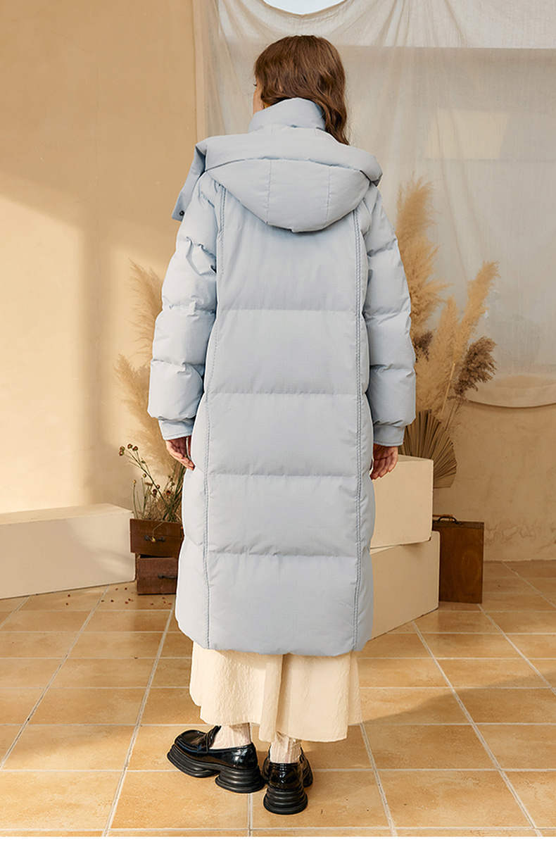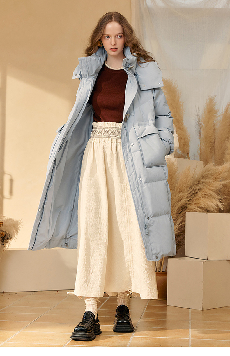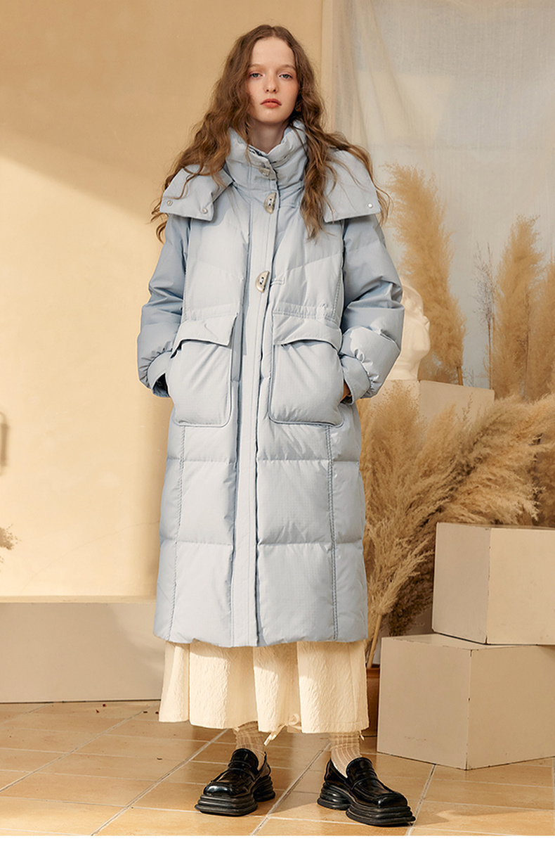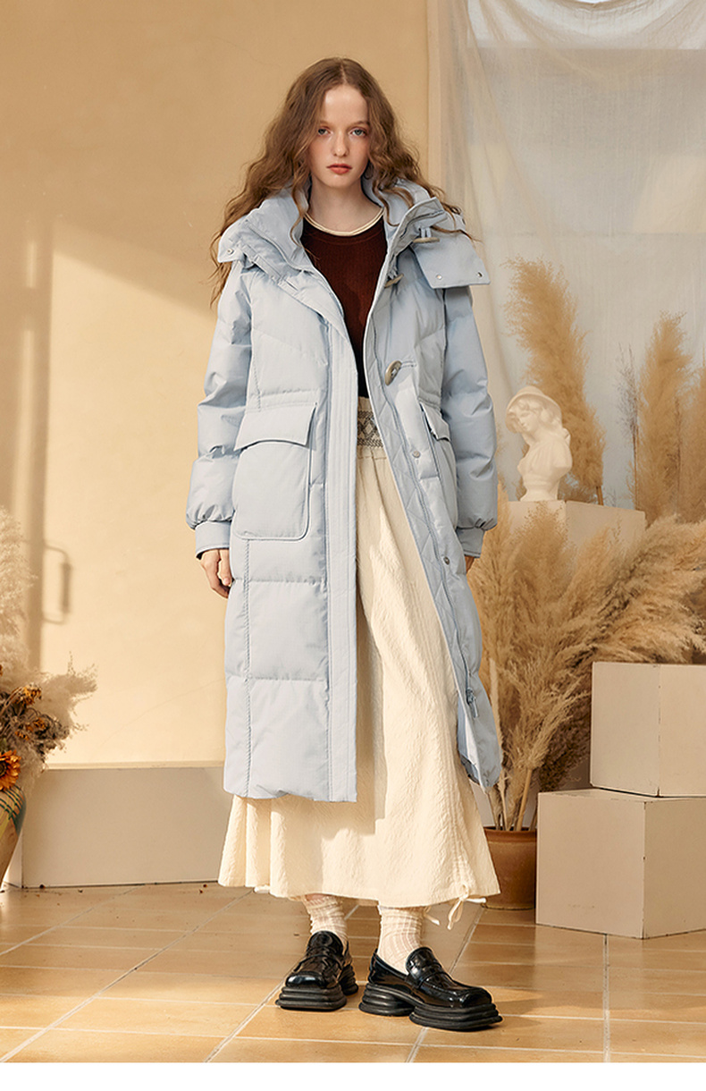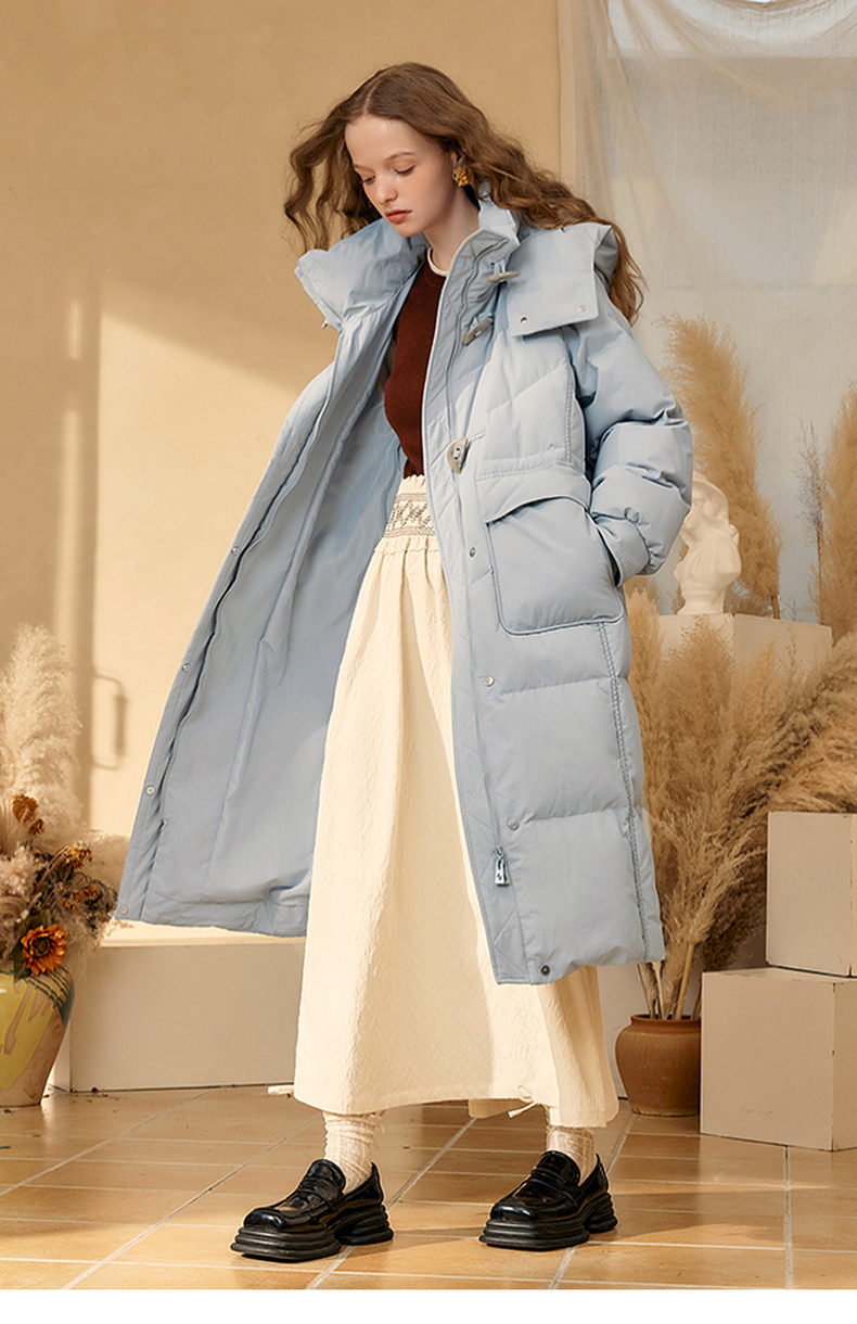 【暖冬内购】两三事银河九天2024冬季新款休闲大口袋长款连帽羽绒服女宽松