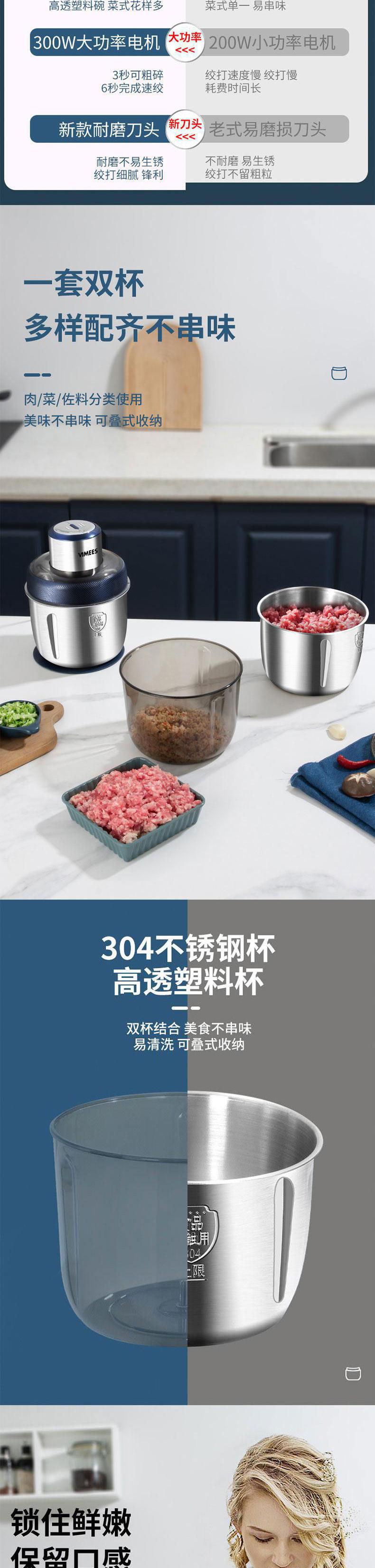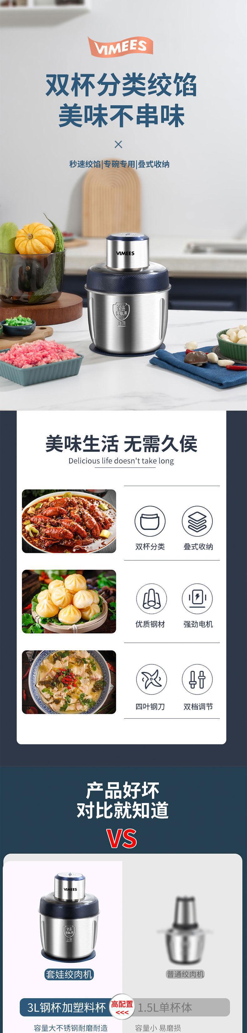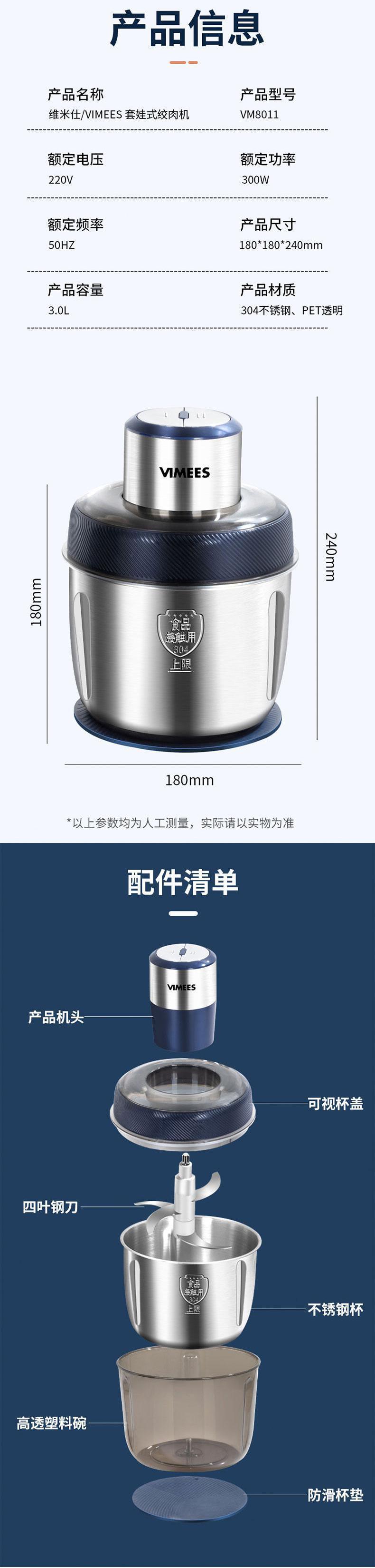 【自营】维米仕(vimees)套娃式绞肉机 辅食机3L蓝色 双杯 VM8011