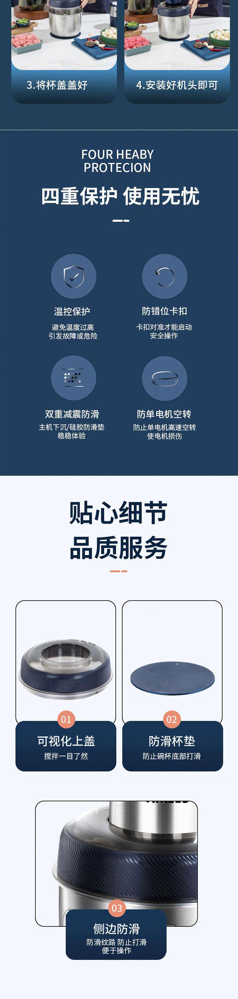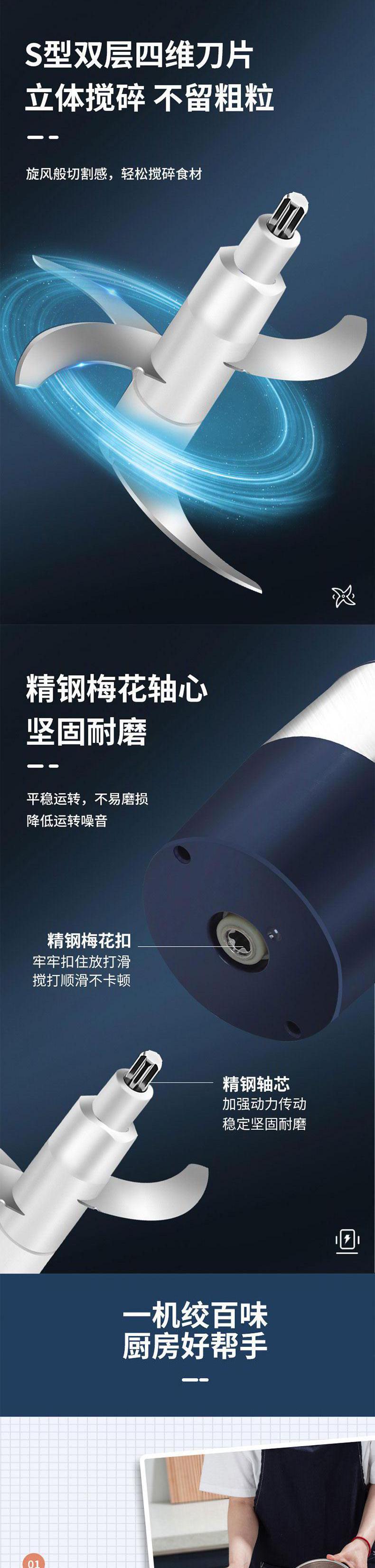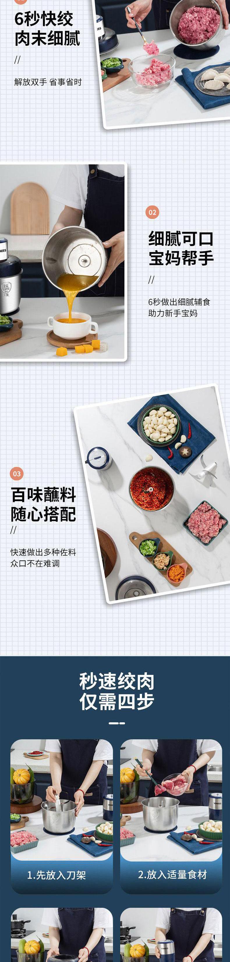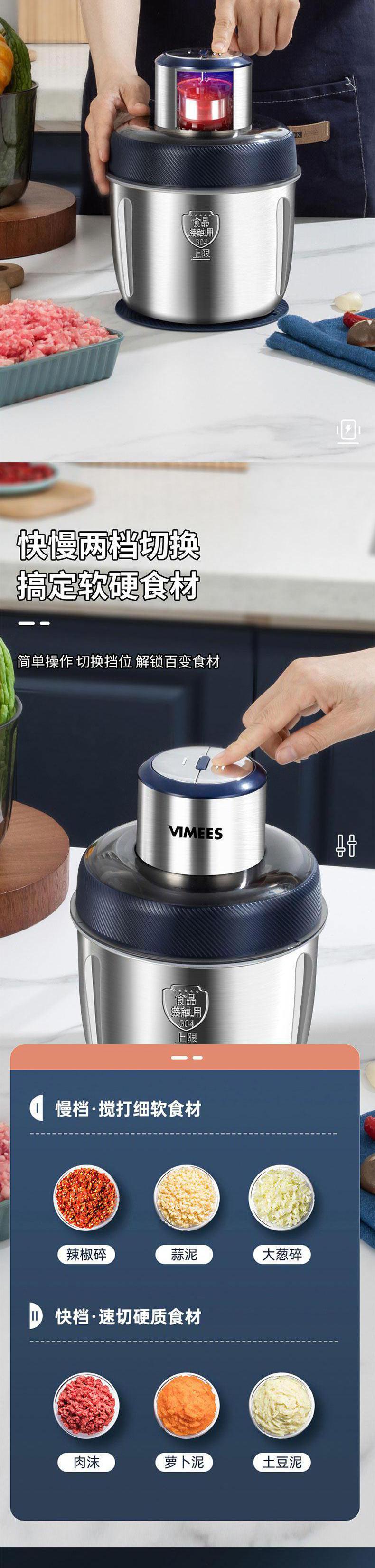 【自营】维米仕(vimees)套娃式绞肉机 辅食机3L蓝色 双杯 VM8011