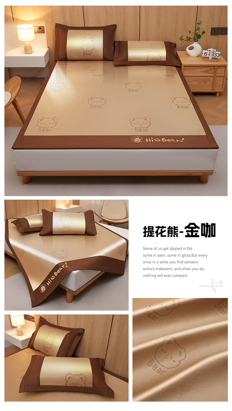 【春夏上新】自然醒A类抗菌防螨小熊幸运星系列冰藤席夏天冰丝凉席空调席婴儿可用学生(免水洗)QJ