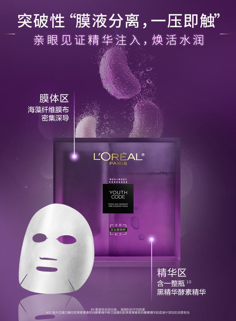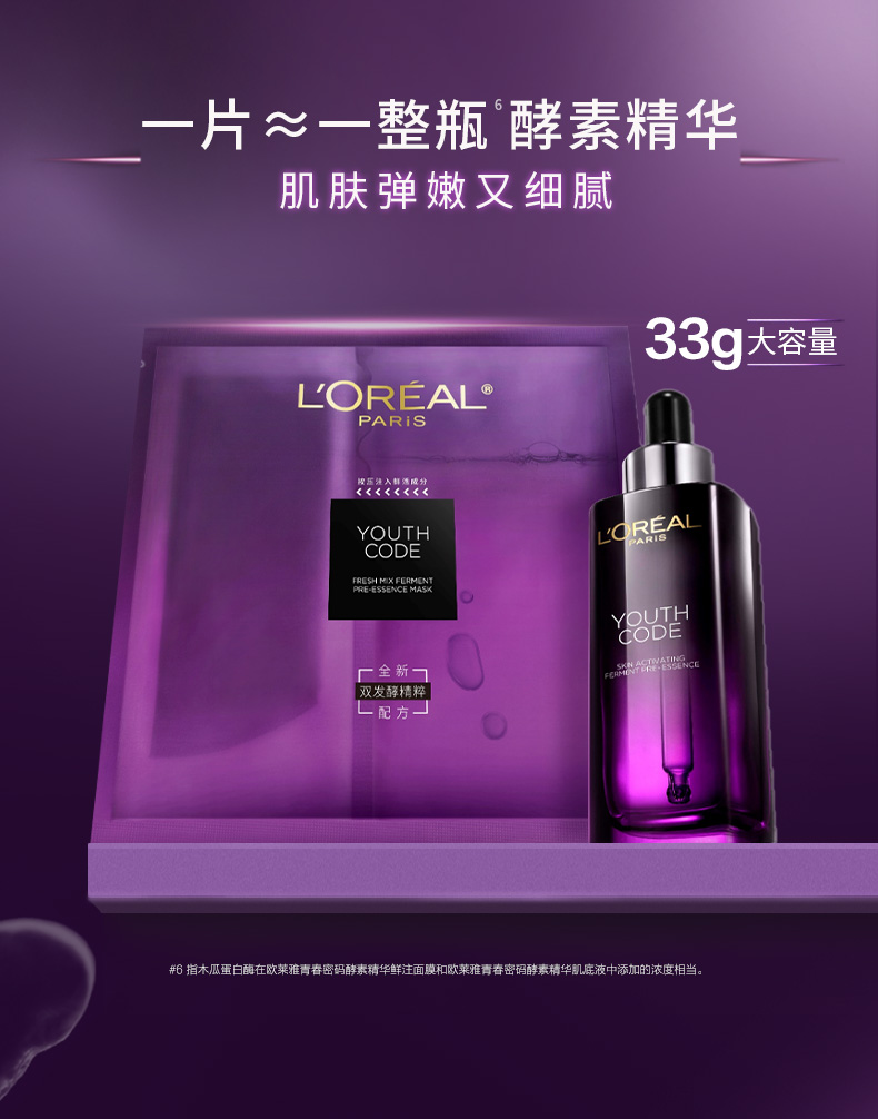 欧莱雅青春密码酵素精华鲜注面膜 33gx5片