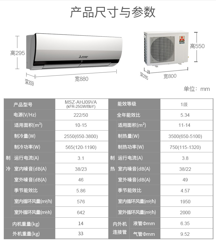 【盛元新生活】Mitsubishi/三菱 MSZ-AHJ09VA大1匹直流变频空调1级能效独立除湿 赠送美扬电水壶