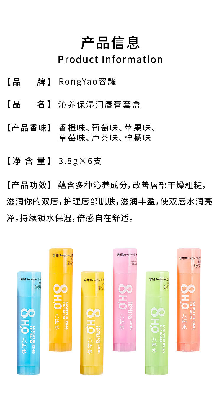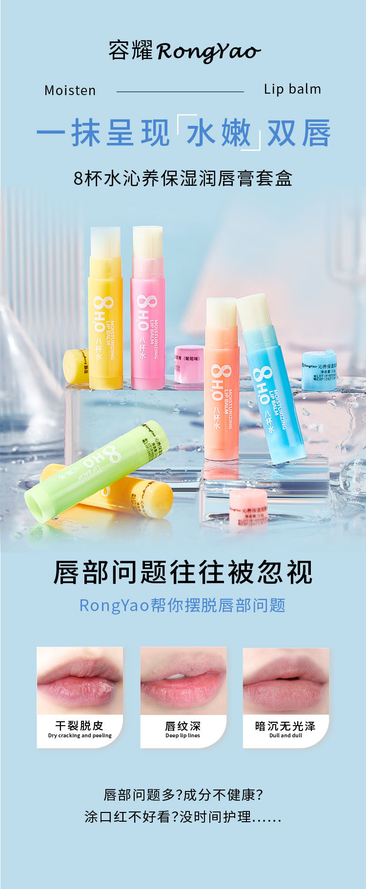 唇部护理【八杯水沁养保湿润唇膏套盒】秋冬季补水保湿 学生润唇膏 多种香味