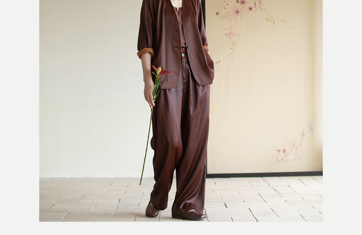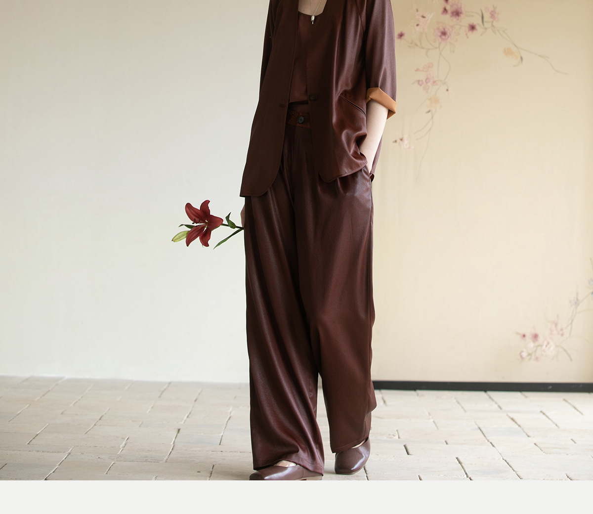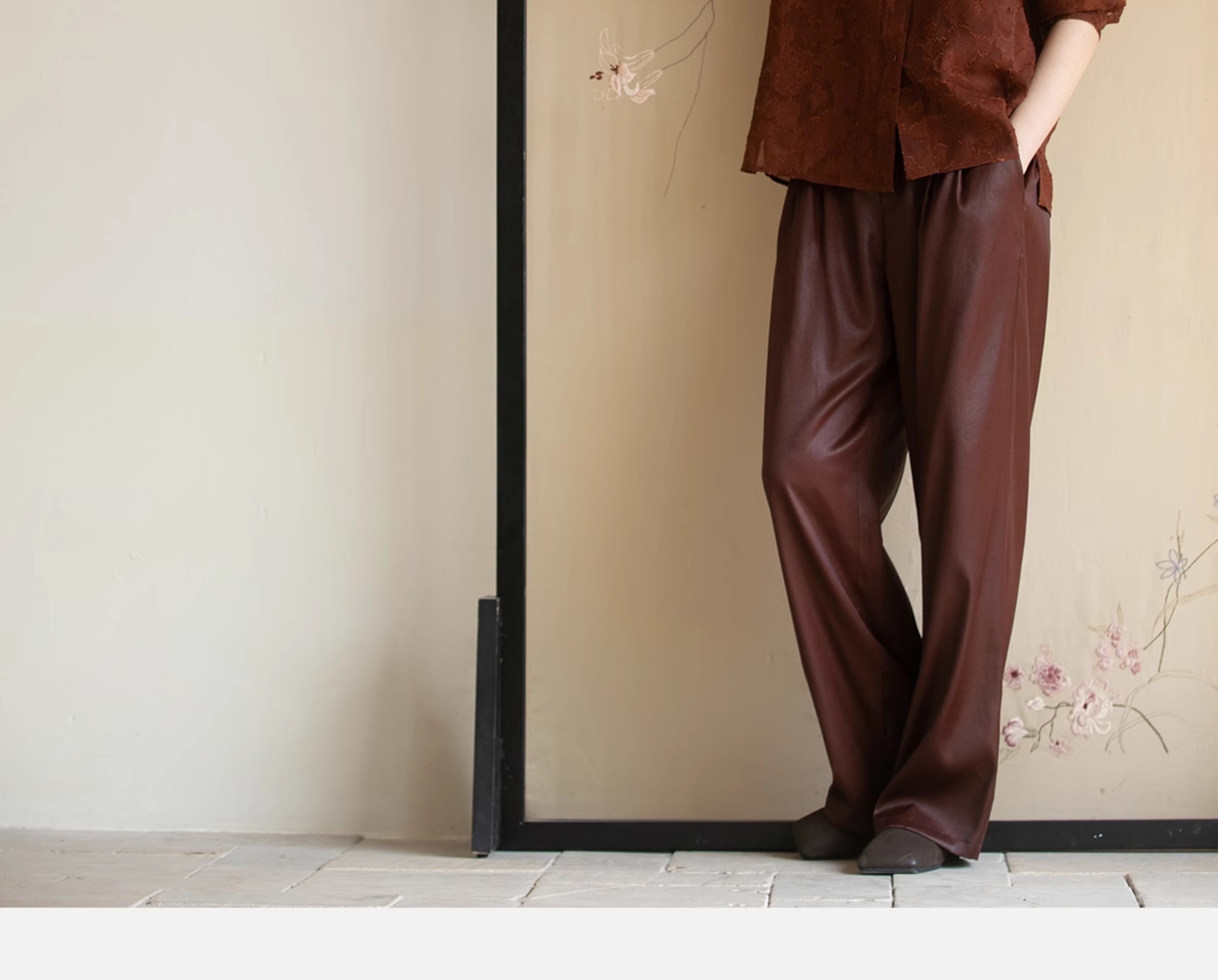 牧衣游原创 净色香云纱阔腿裤清凉透气垂感宽松百搭休闲裤 春日晴