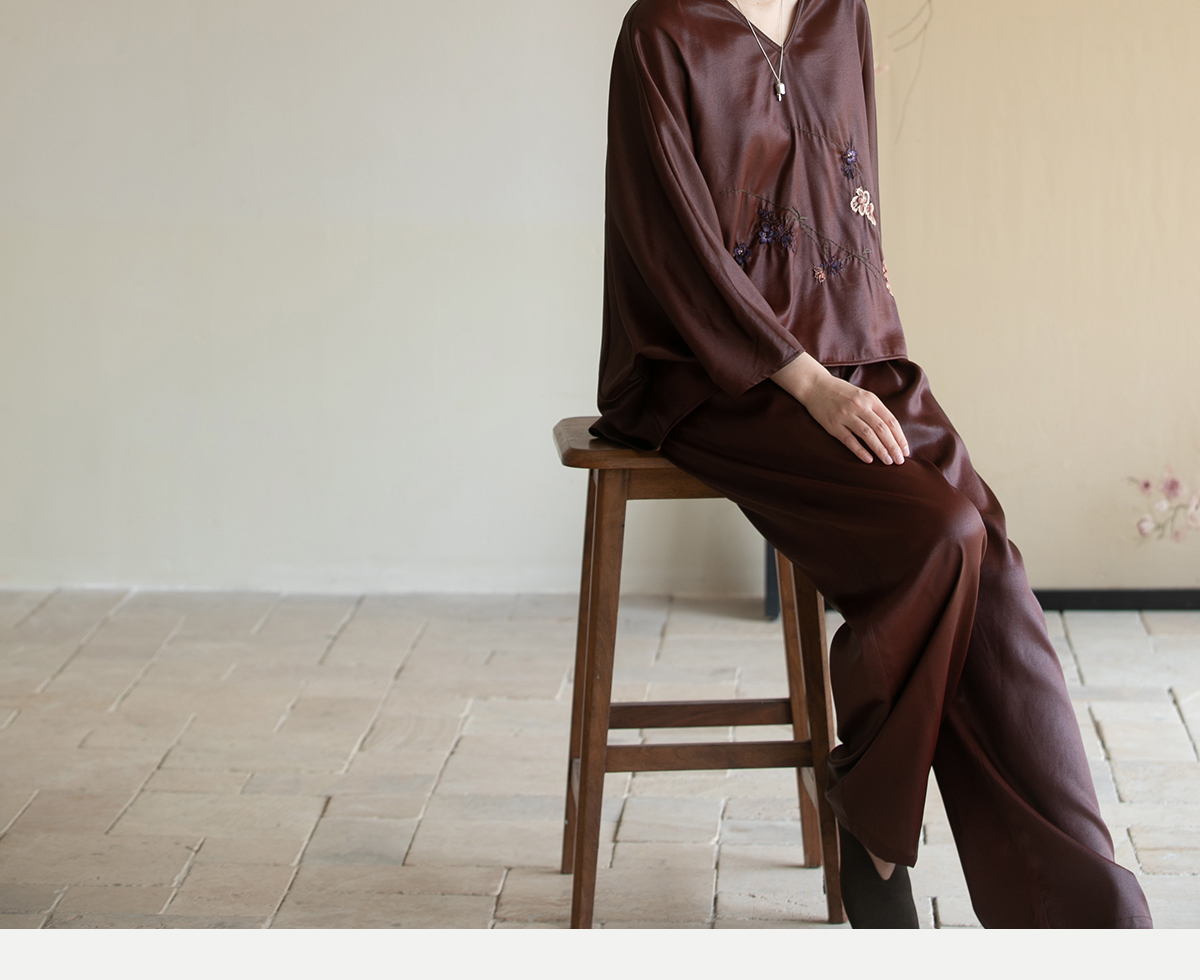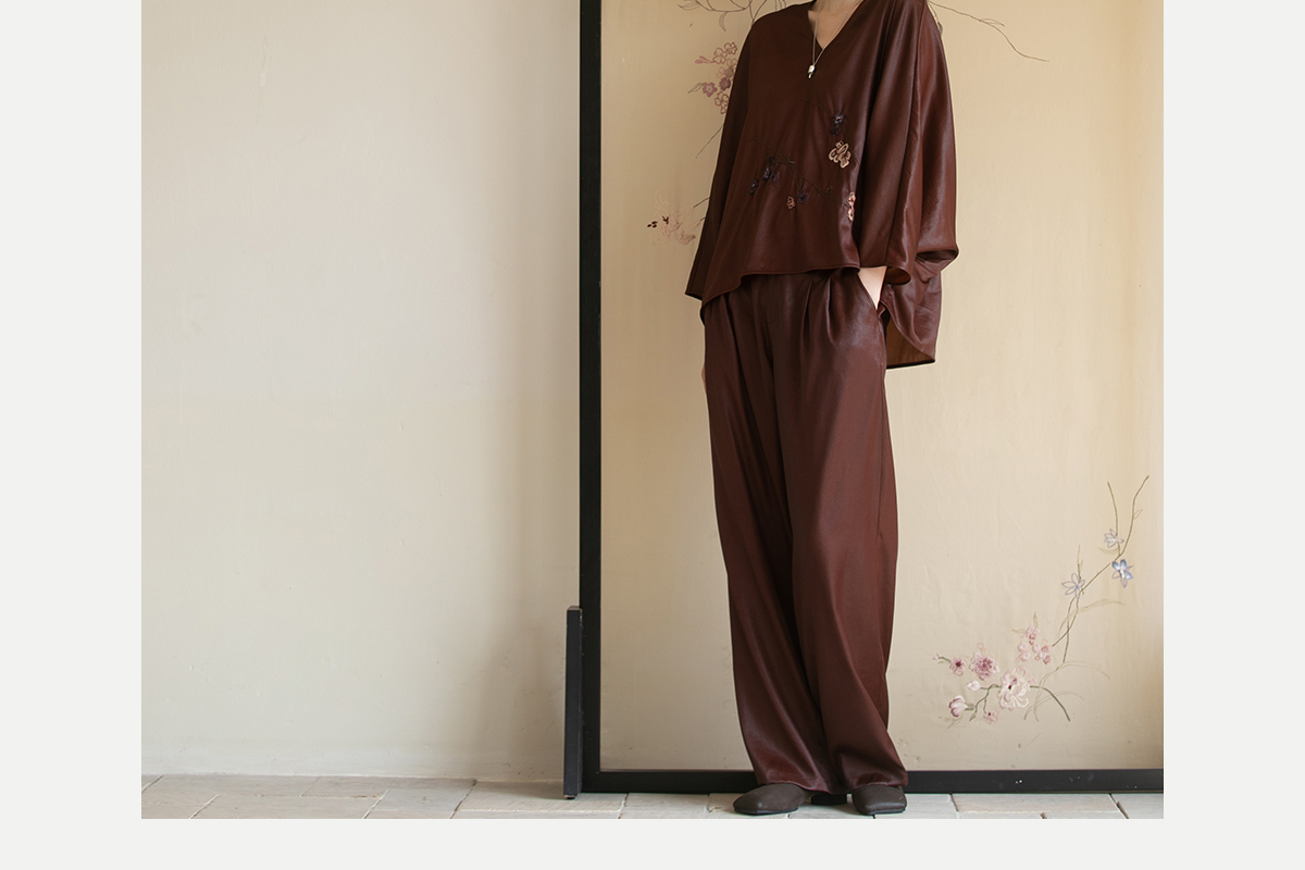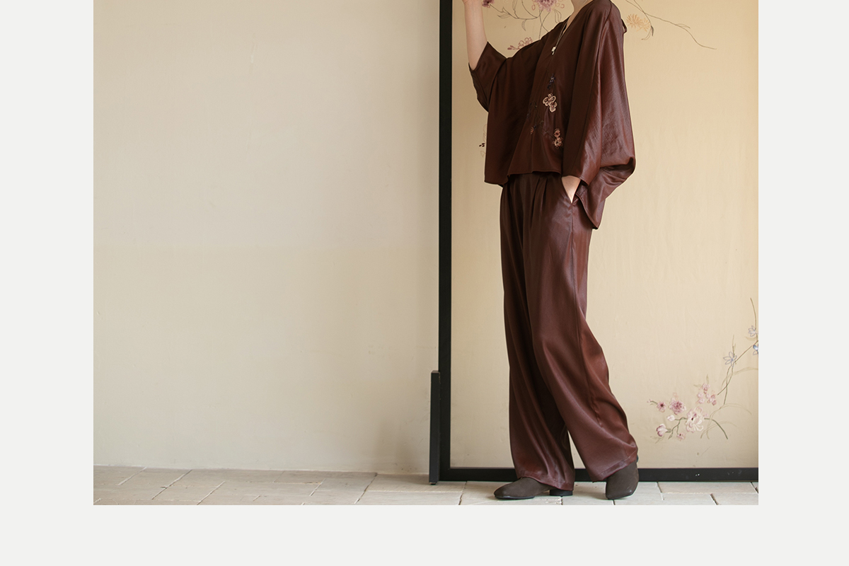 牧衣游原创 净色香云纱阔腿裤清凉透气垂感宽松百搭休闲裤 春日晴