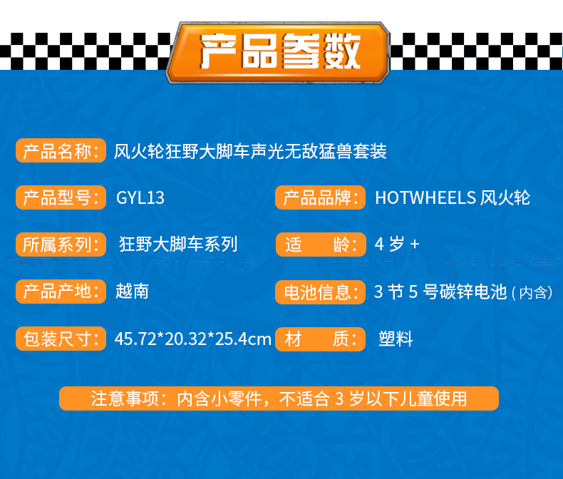风火轮狂野大脚车声光无敌猛兽套装GYL13