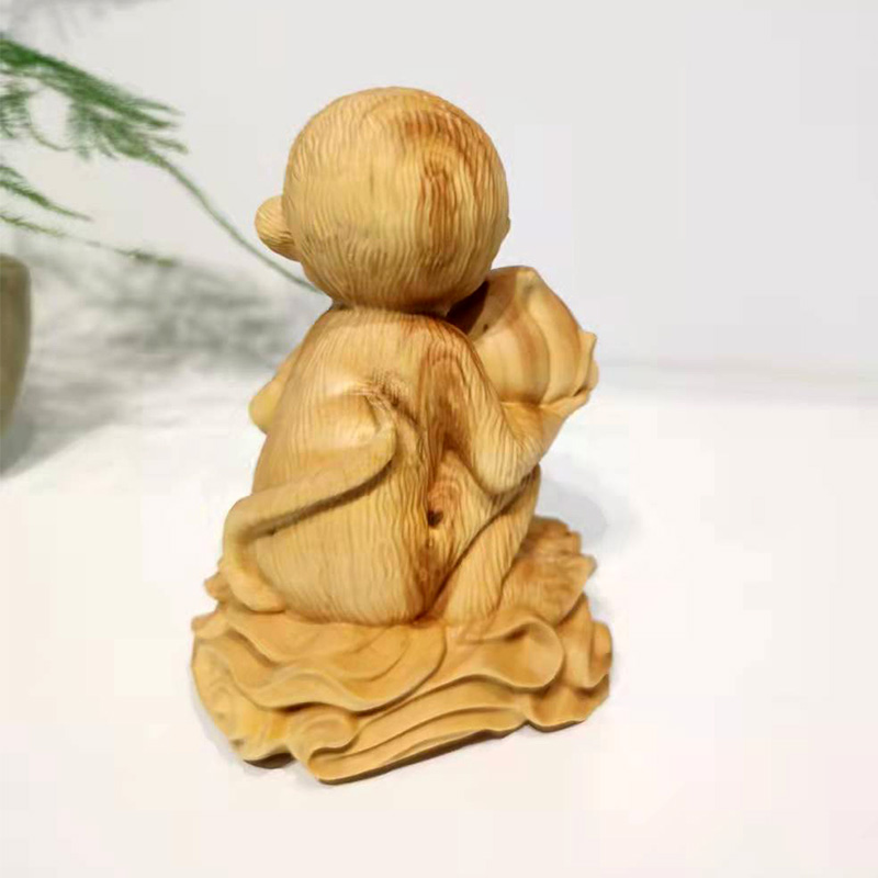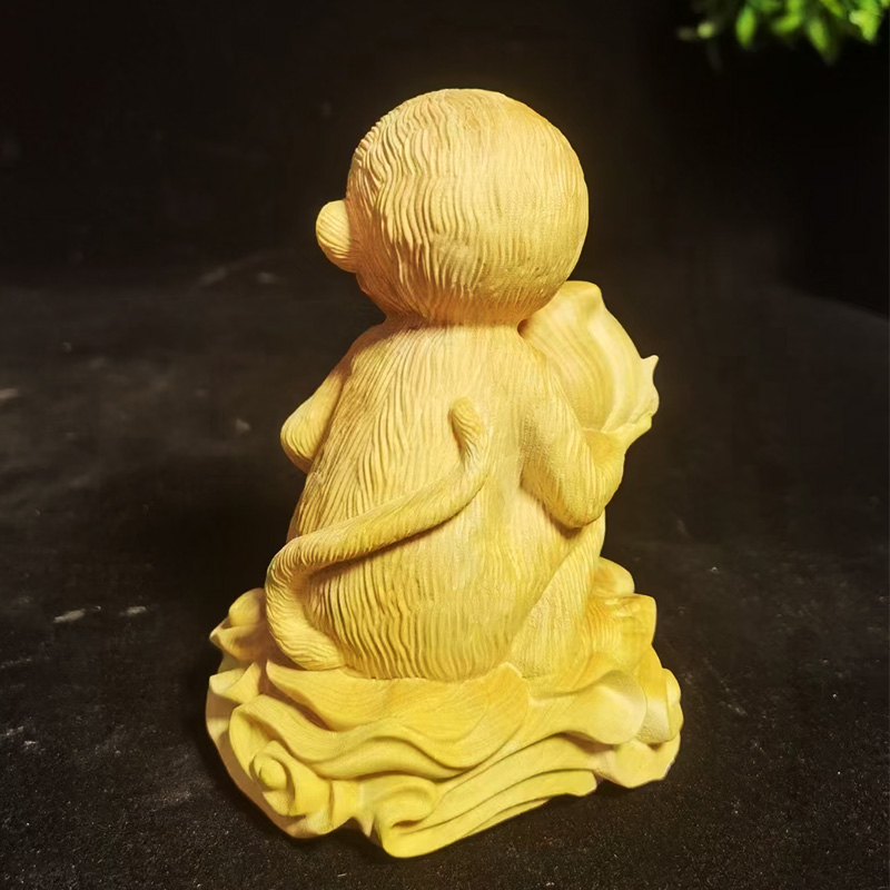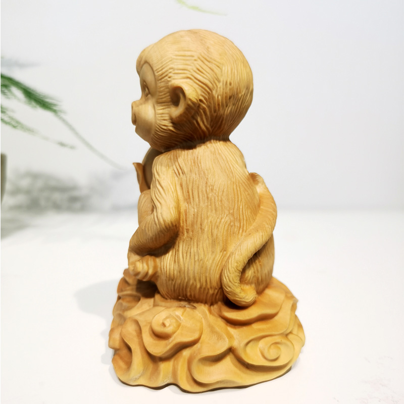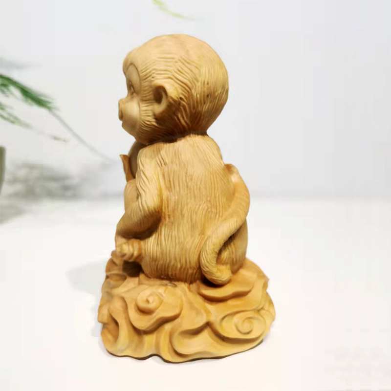 ↓大款本色°灵猴献寿°黄杨木雕摆件