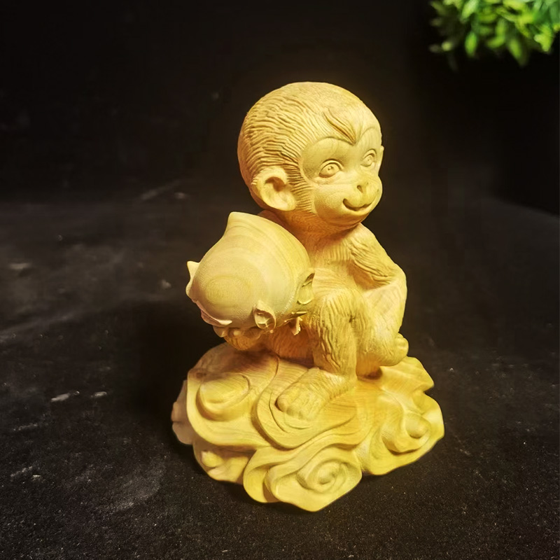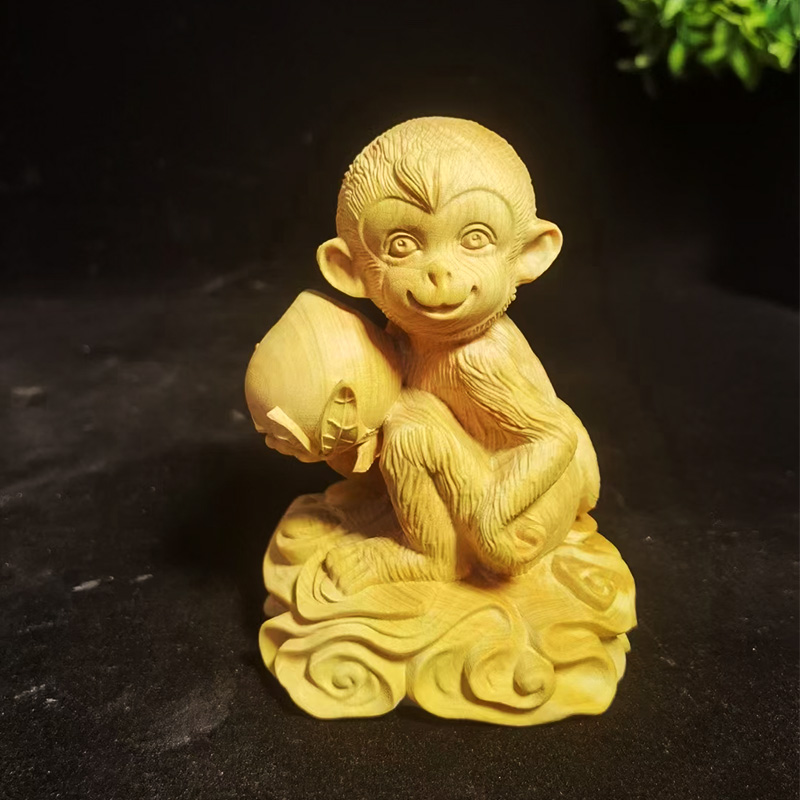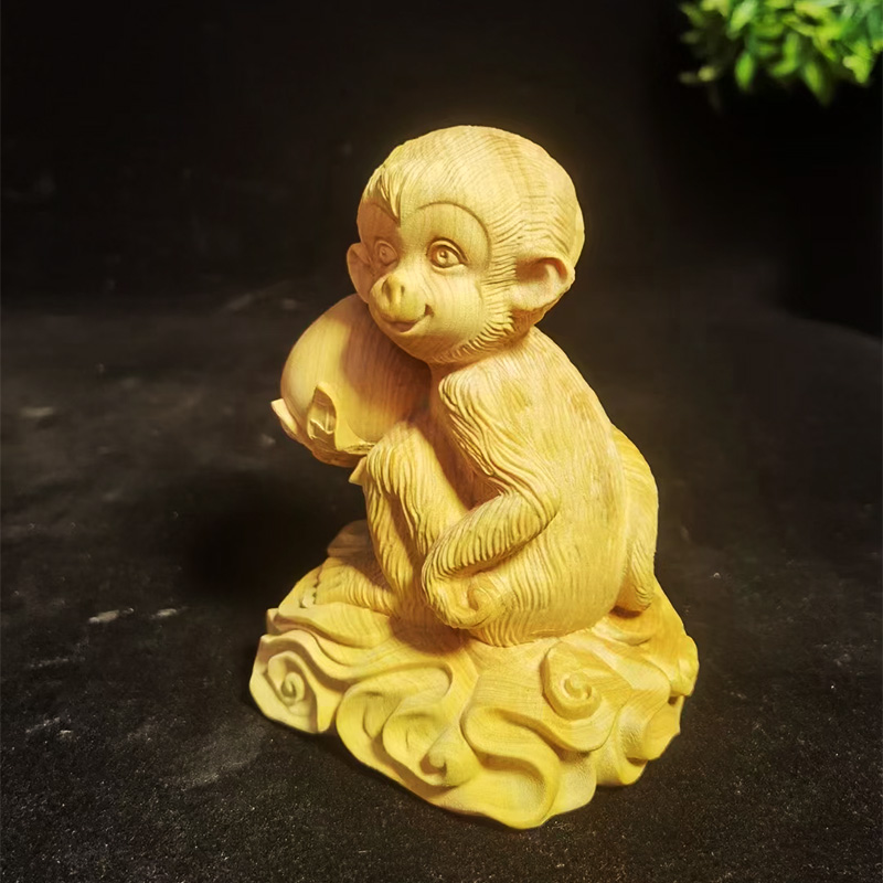 灵猴献寿°木雕摆件