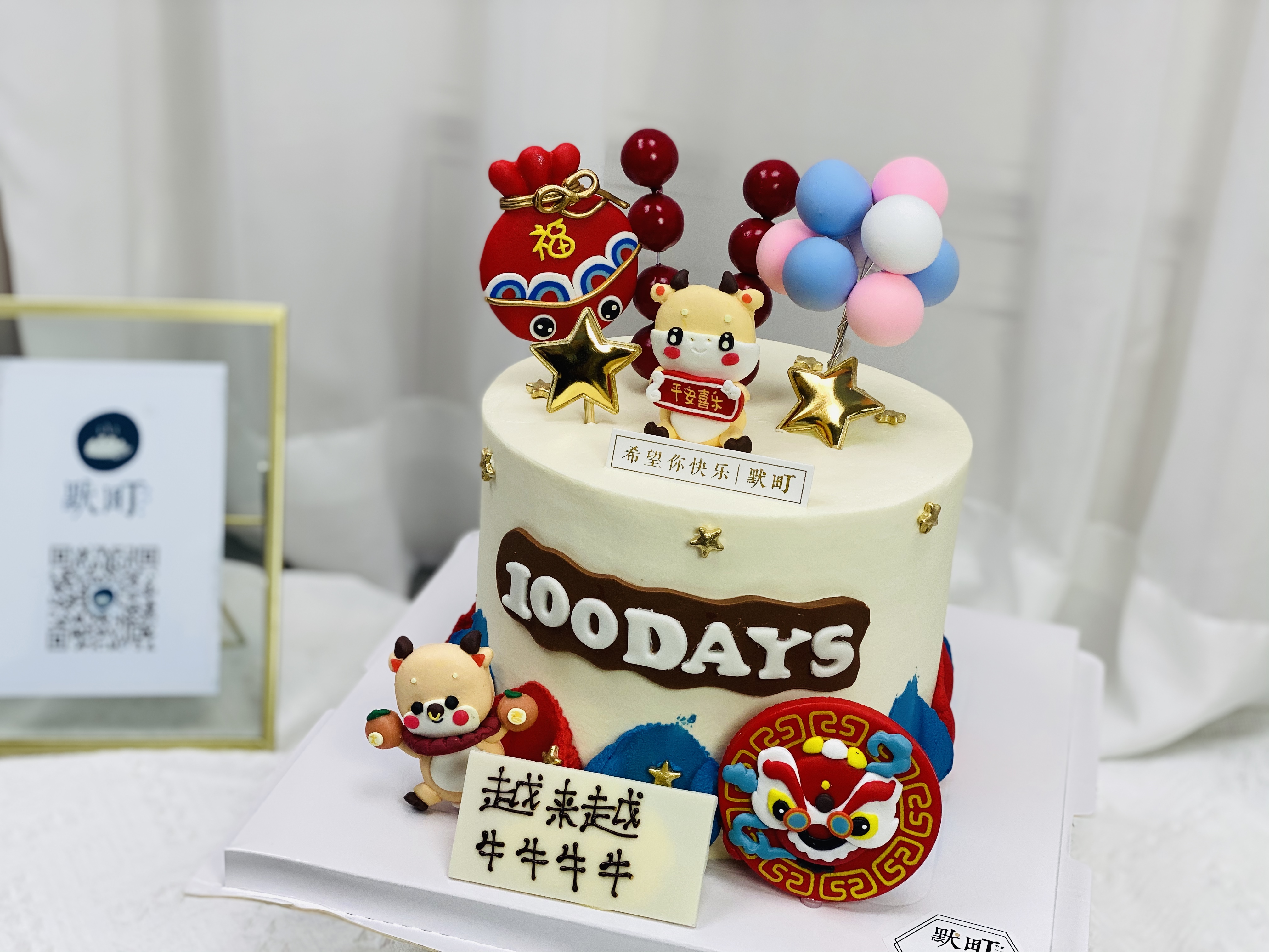 牛一•喜悦蛋糕(中间英文翻糖数字可改,请备注)