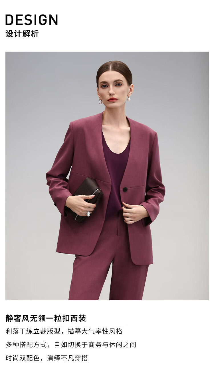 COCOBELLA静奢风一粒扣无领西装简约气质休闲西服外套SI7030