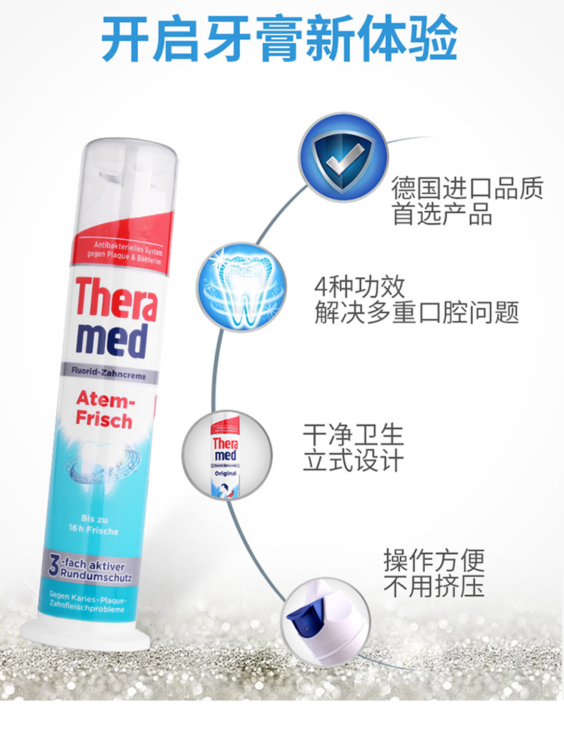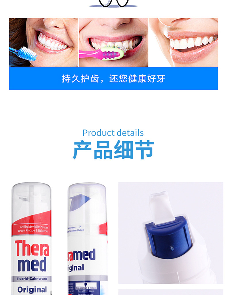 KJ 德国进口含氟去烟渍汉高按压牙膏亮白牙齿清新口气除牙渍垢黄口臭