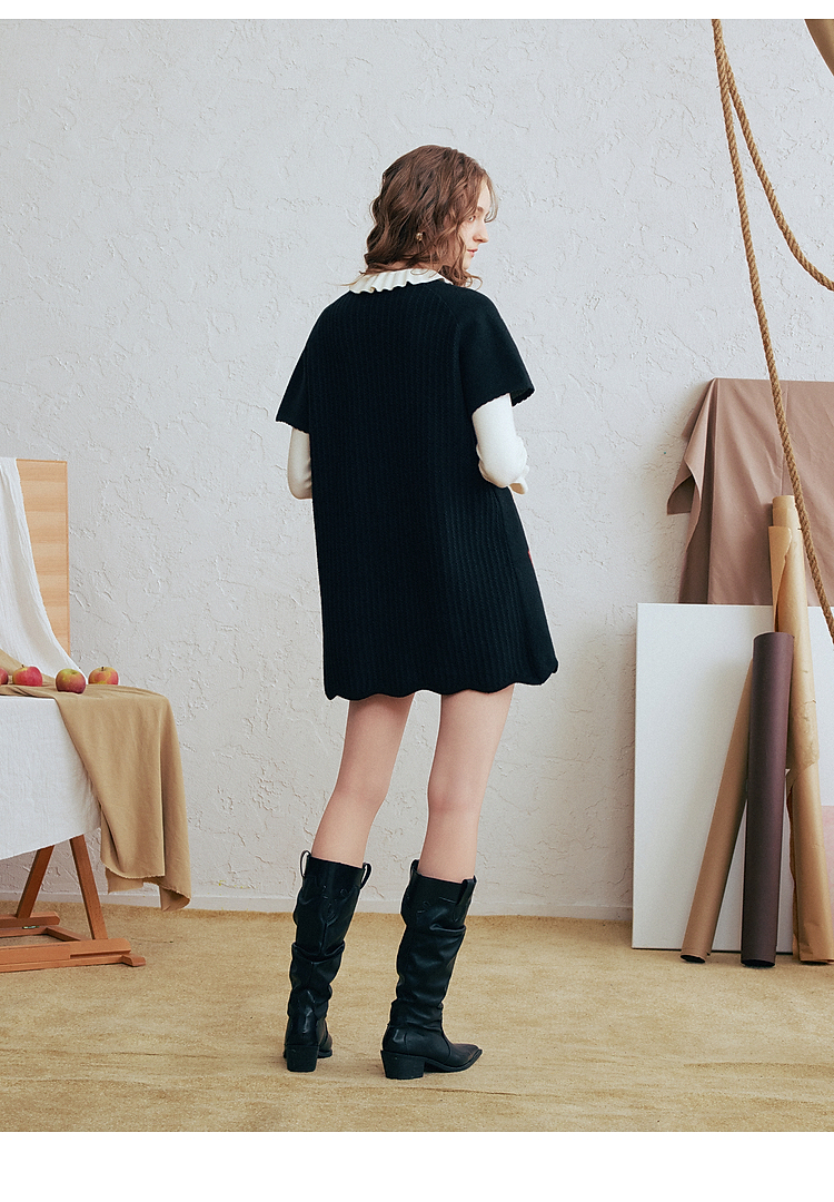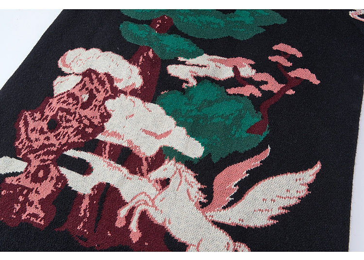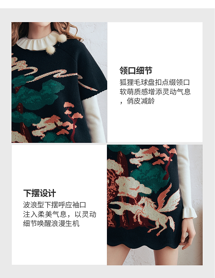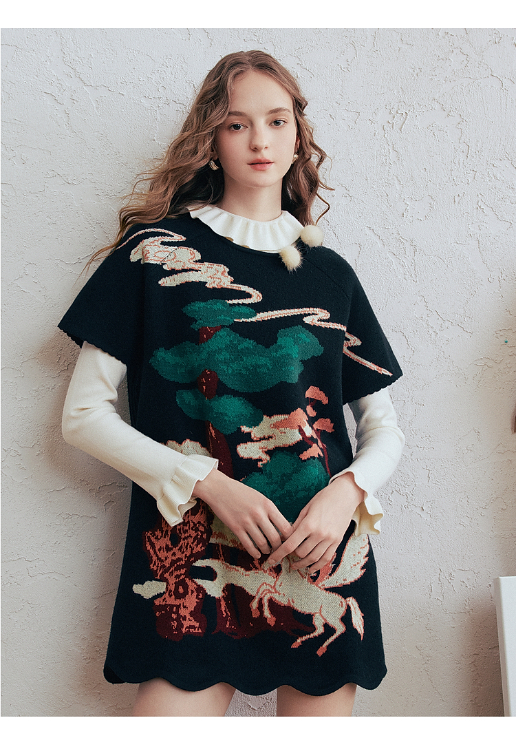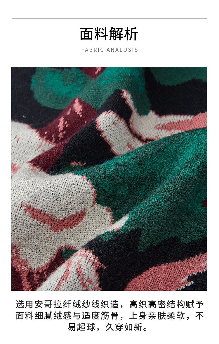 两三事 云驮松青 2026春季新款复古毛球装饰花色套头针织衫女宽松
