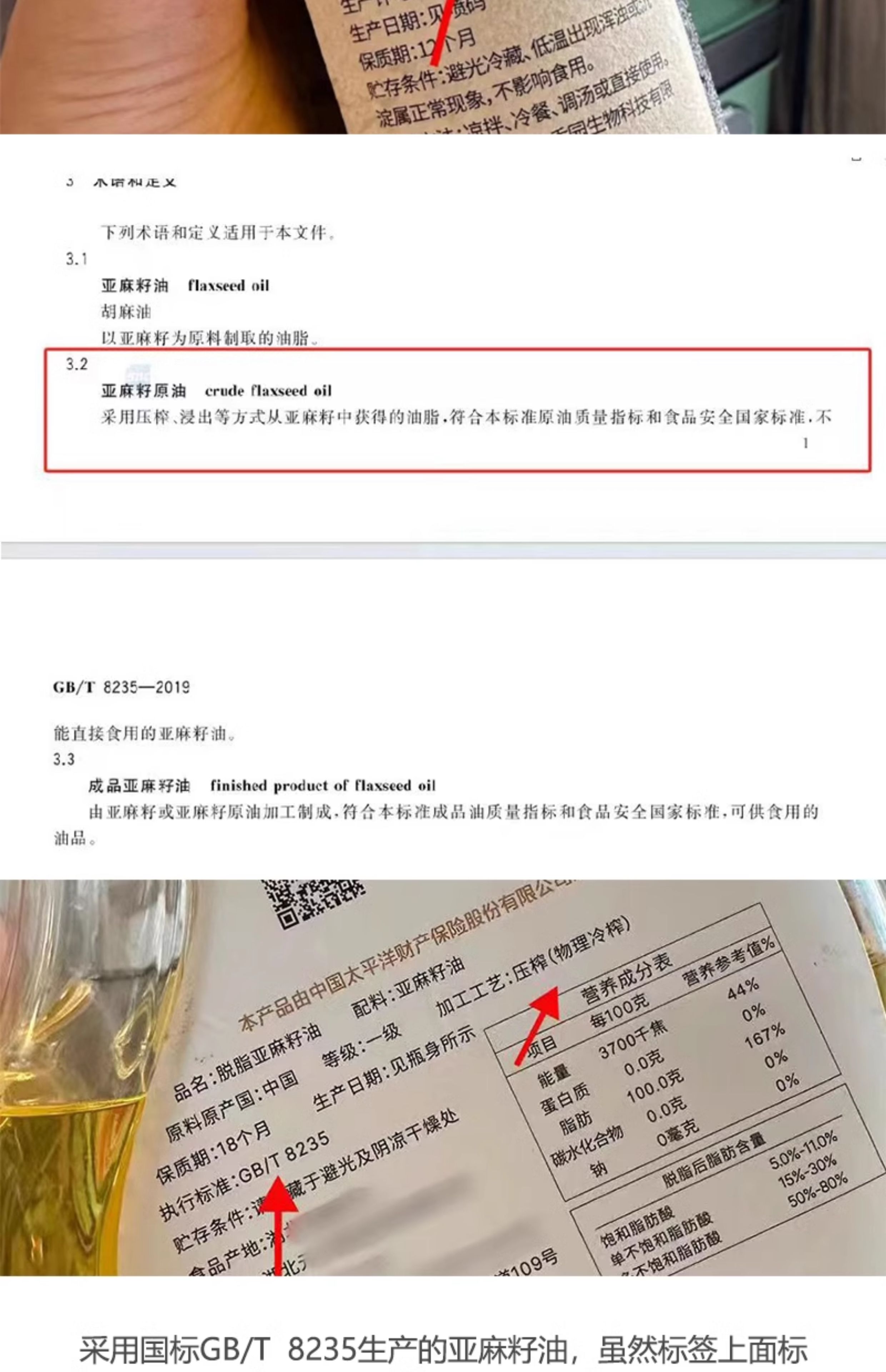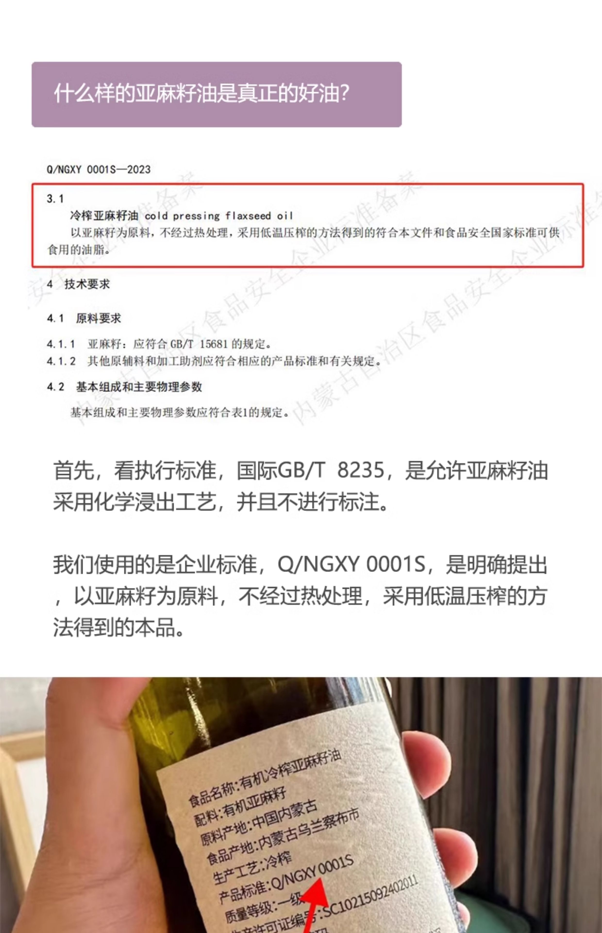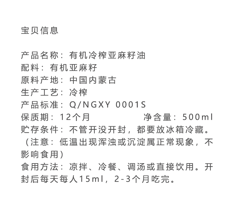 有机冷榨亚麻籽油/非浸出油/亚麻酸含量高达56.7%