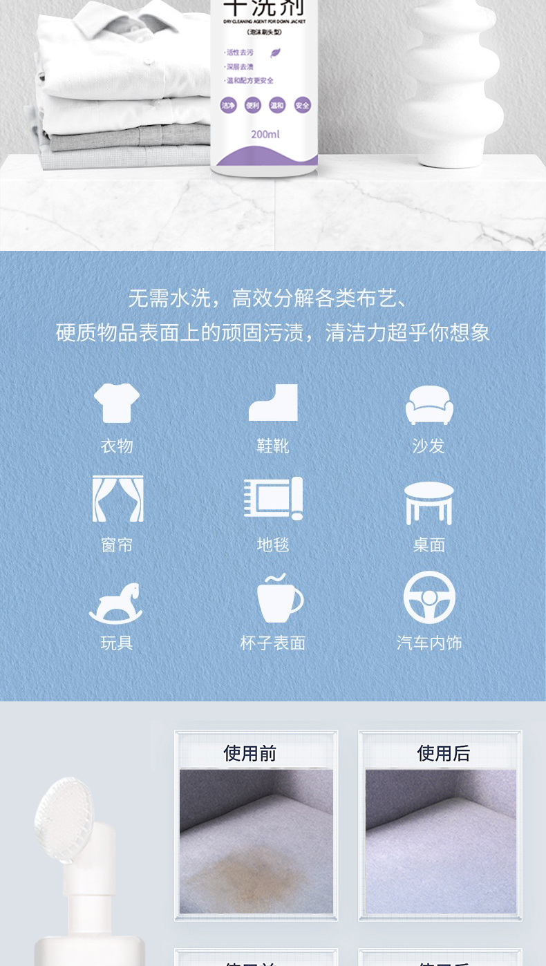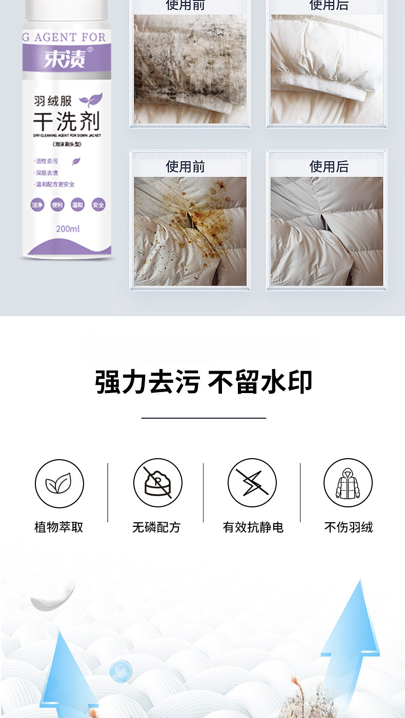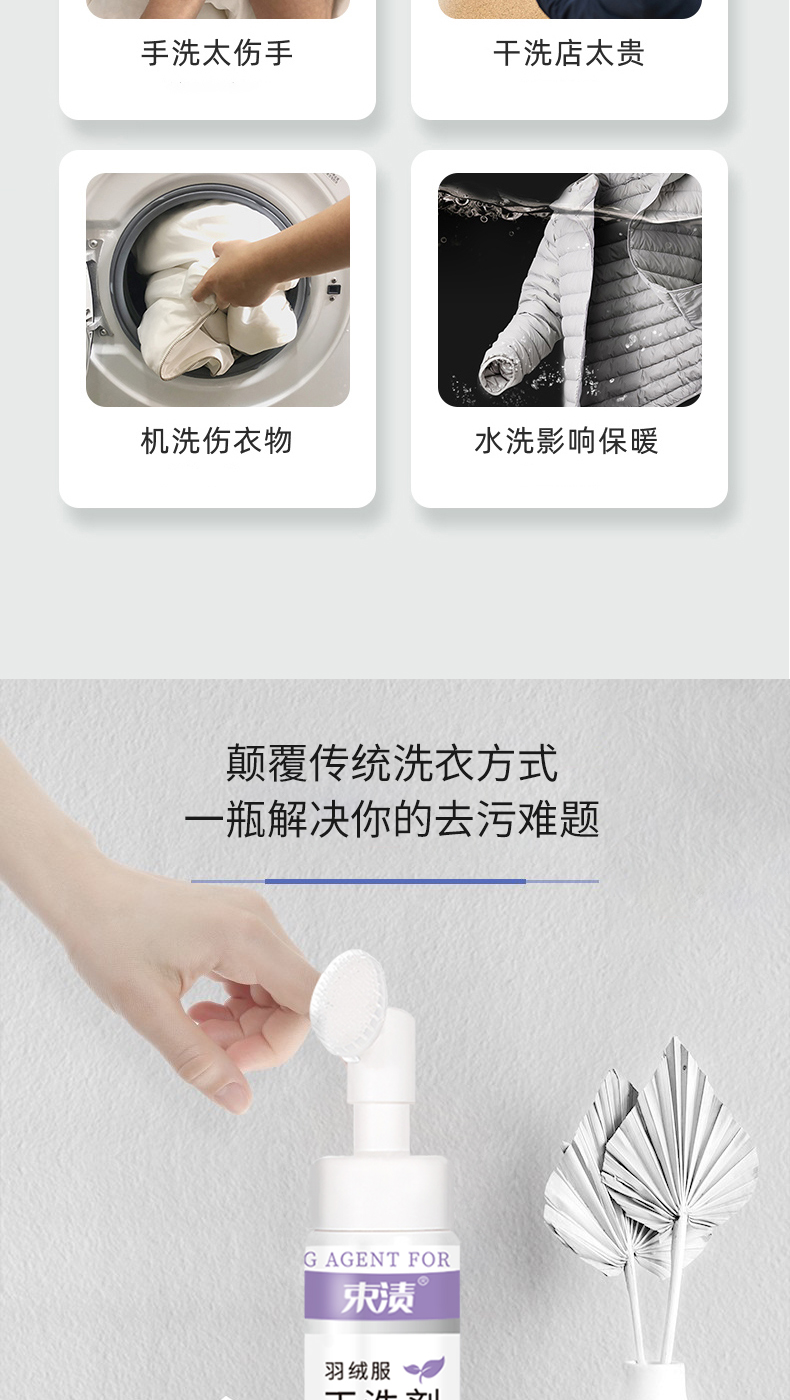 【自营】束渍-羽绒服干洗剂免水洗清洗剂强力去污渍衣物去油渍(带硅胶刷头)200ml SUZHI-041