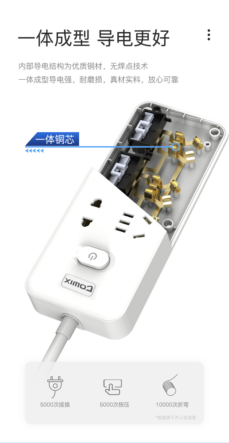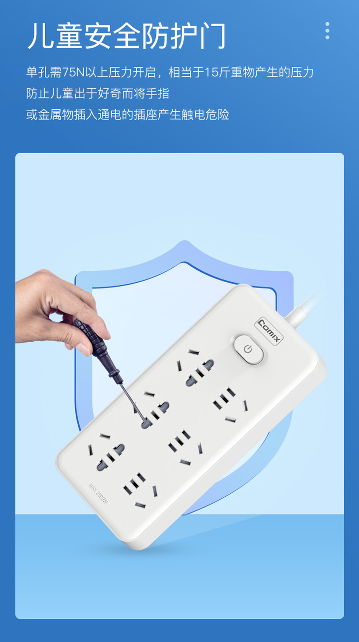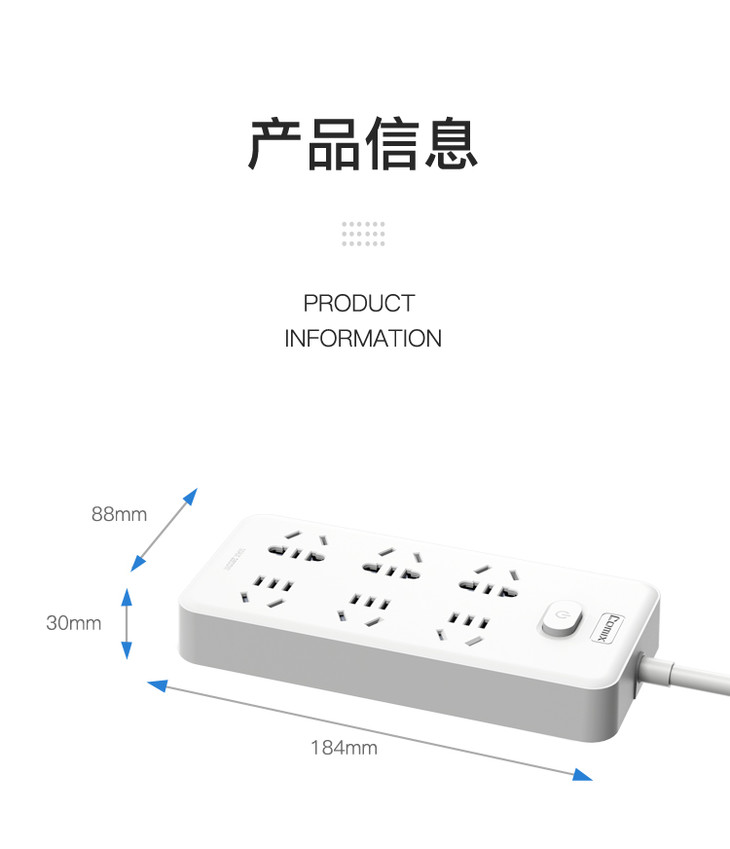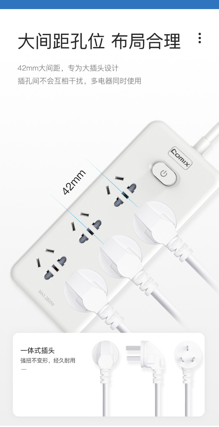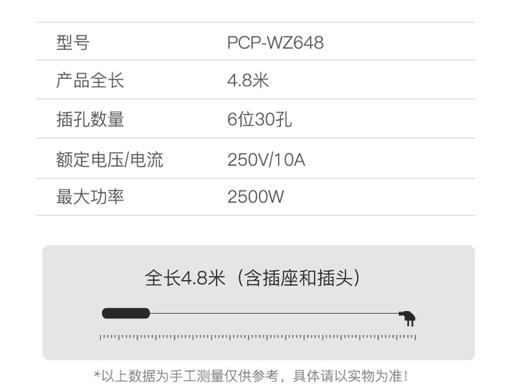 齐心插线板PCP-WZ628白色6位30孔总控全长2.8米