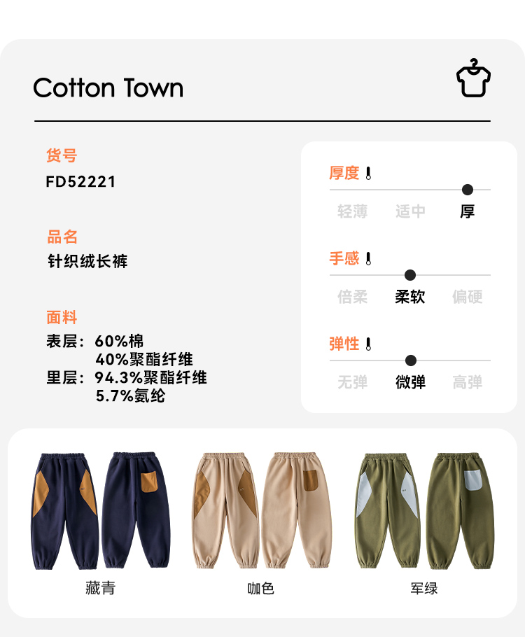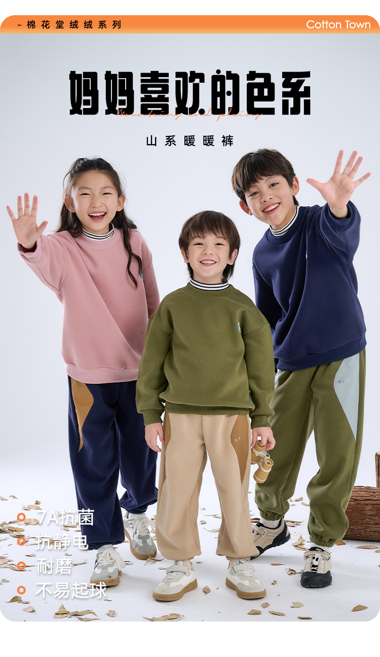 【棉花堂】中大童90-160秋冬款针织绒长裤聚