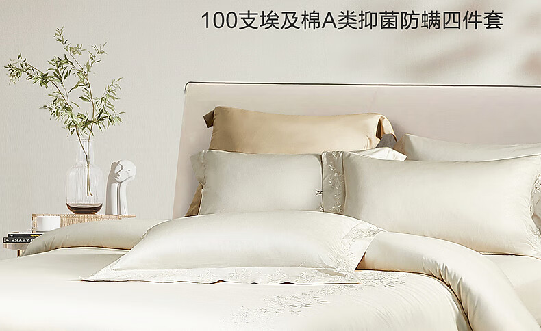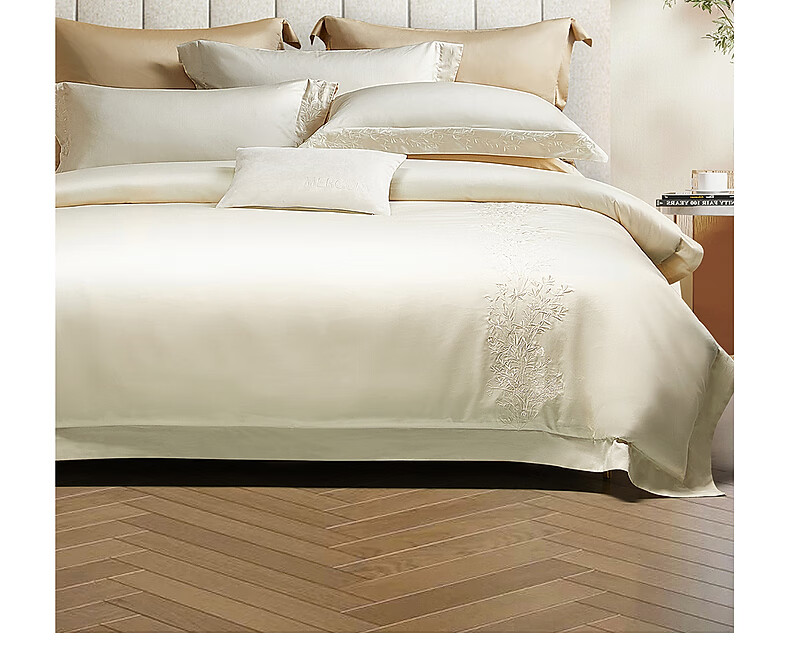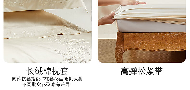 水星家纺床上四件套 100支埃及长绒棉 A类酒店轻奢床品 被套床单枕套 唐顿庄园(床笠款) 1.8米床 适配220*240cm被芯