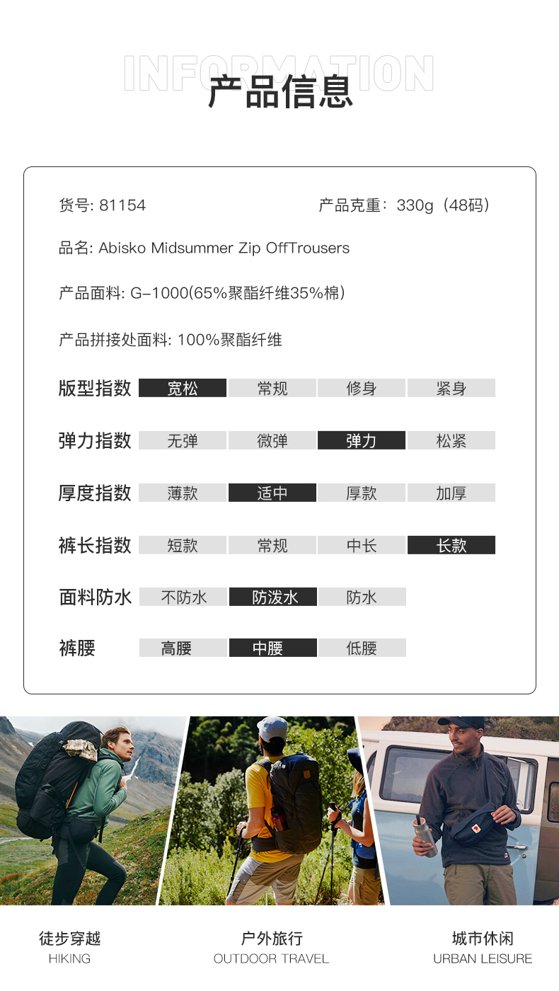 北极狐年男士G-1000透气耐磨可调节冲锋裤短裤长裤 81154