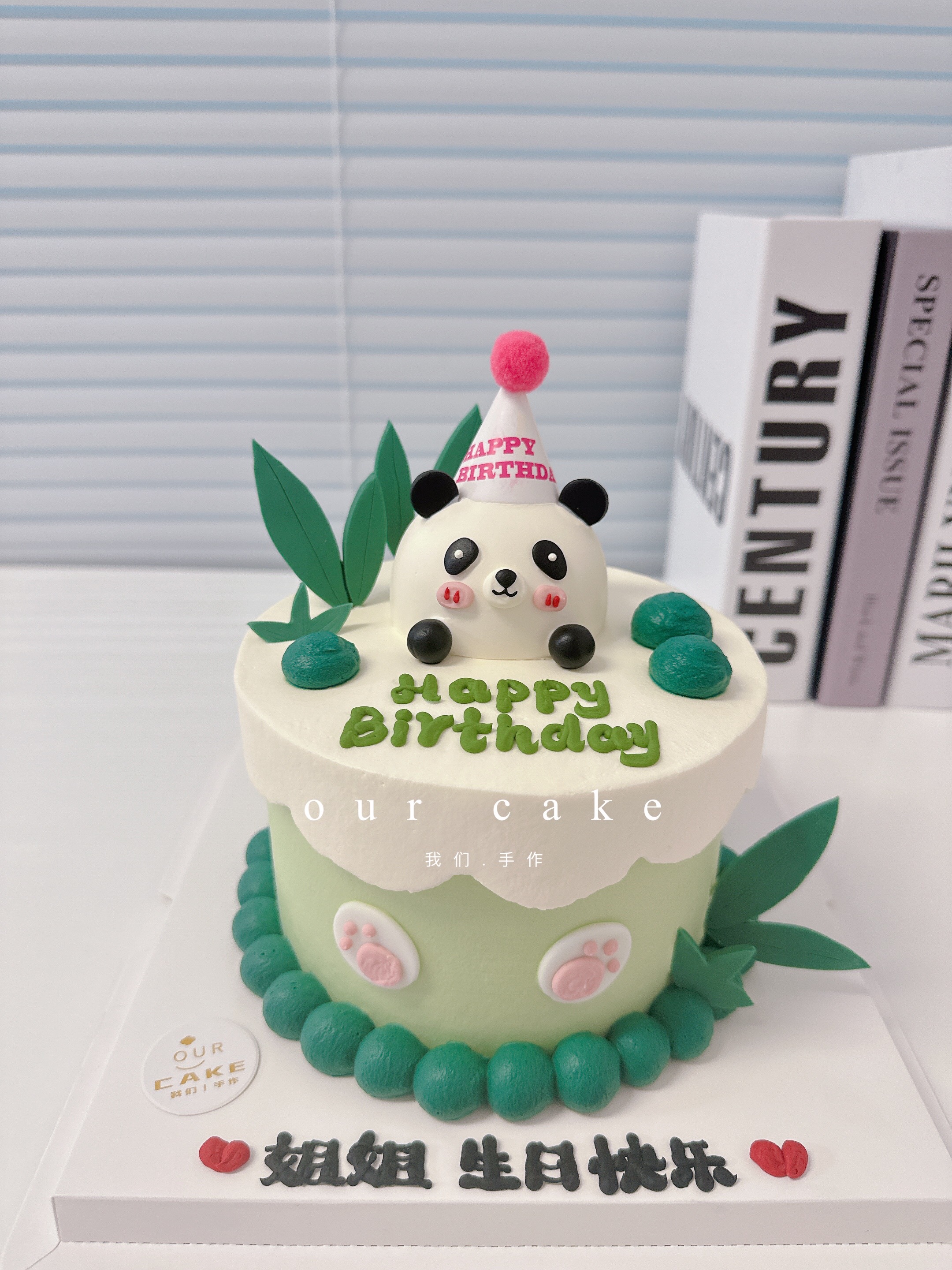 大熊猫动物手绘卡通蛋糕-低糖处理无添加