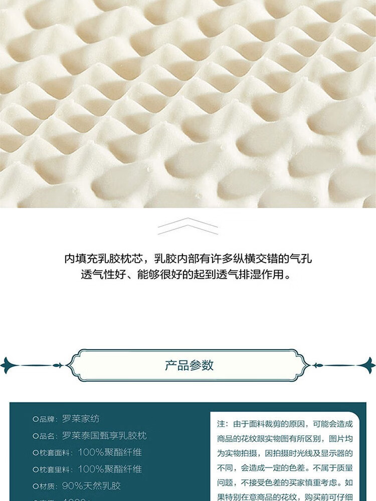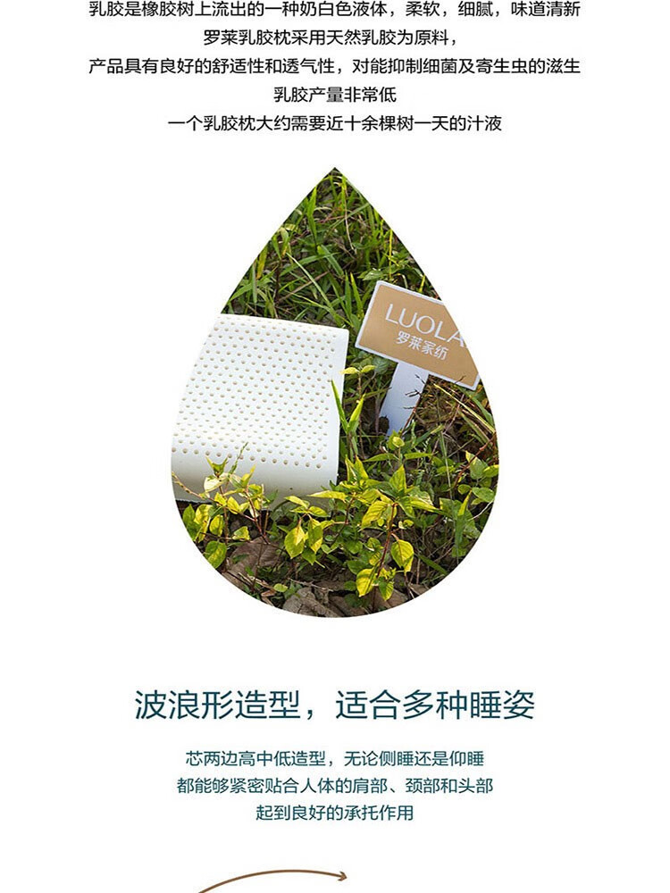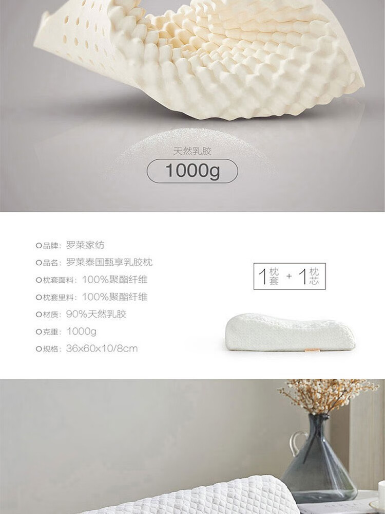 罗莱 泰国甄享乳胶枕36*60*10/8cm,1000g