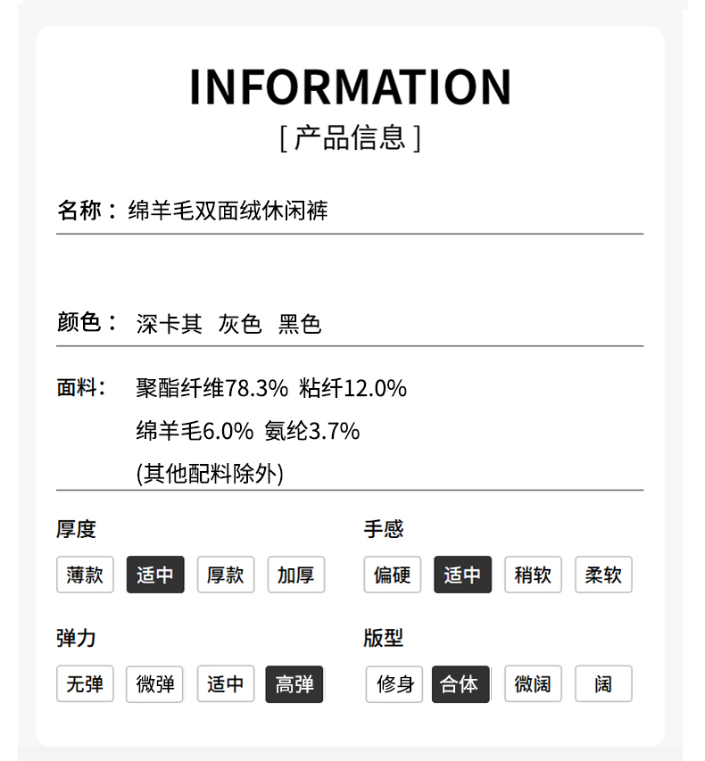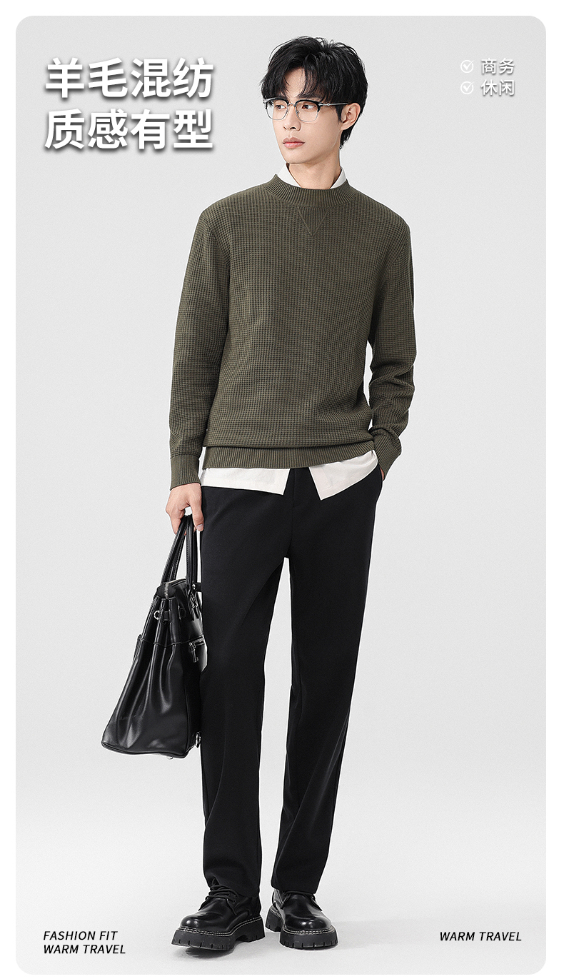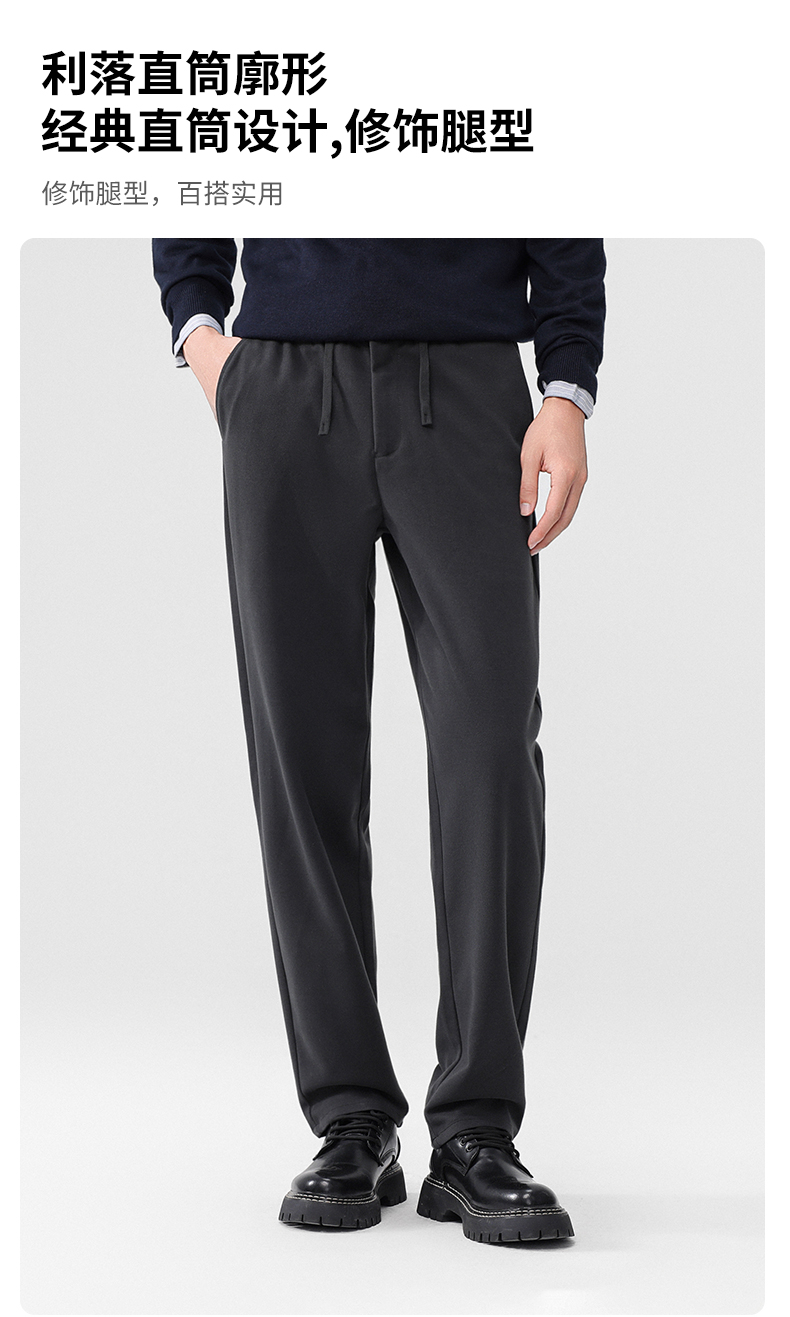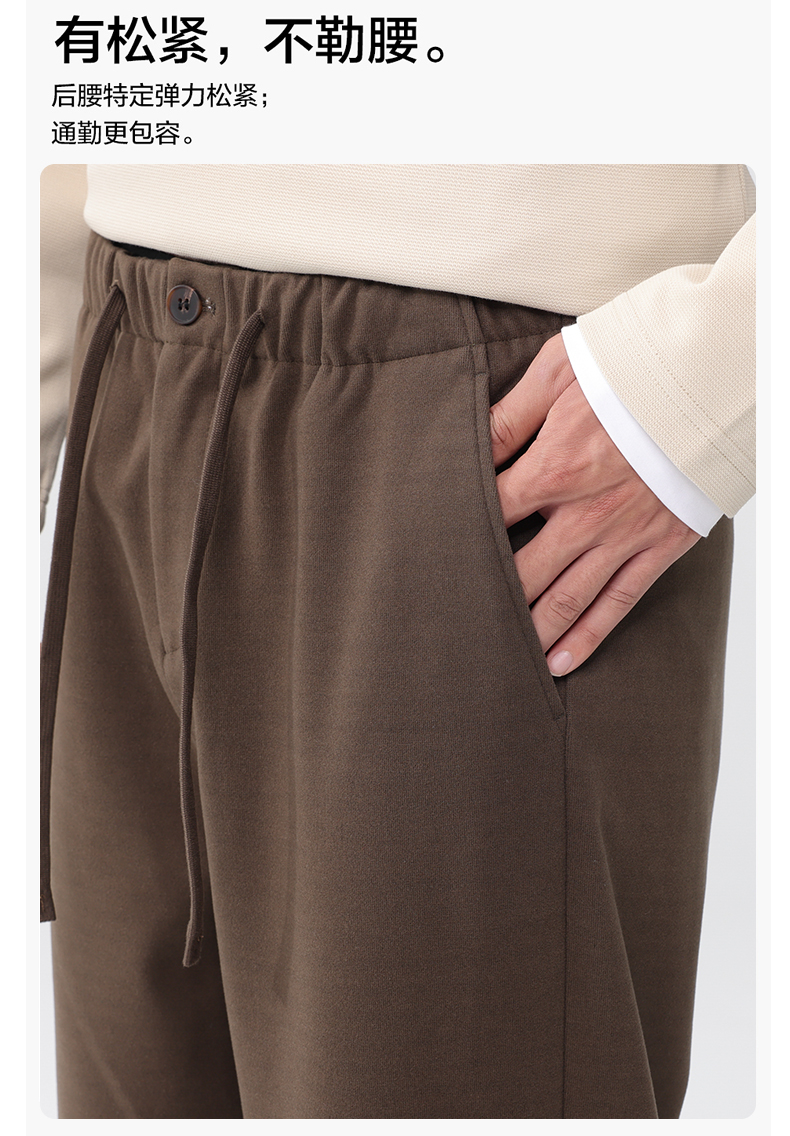 【含绵羊毛】罗蒙休闲裤男士双面绒感半松紧腰头搭配抽绳修饰腿型长裤