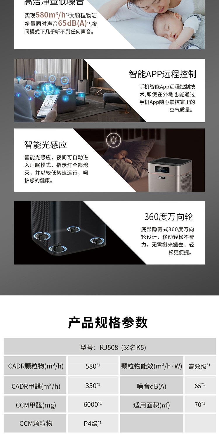 莱克除甲醛负离子空气净化器 KJ508
