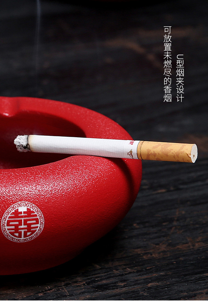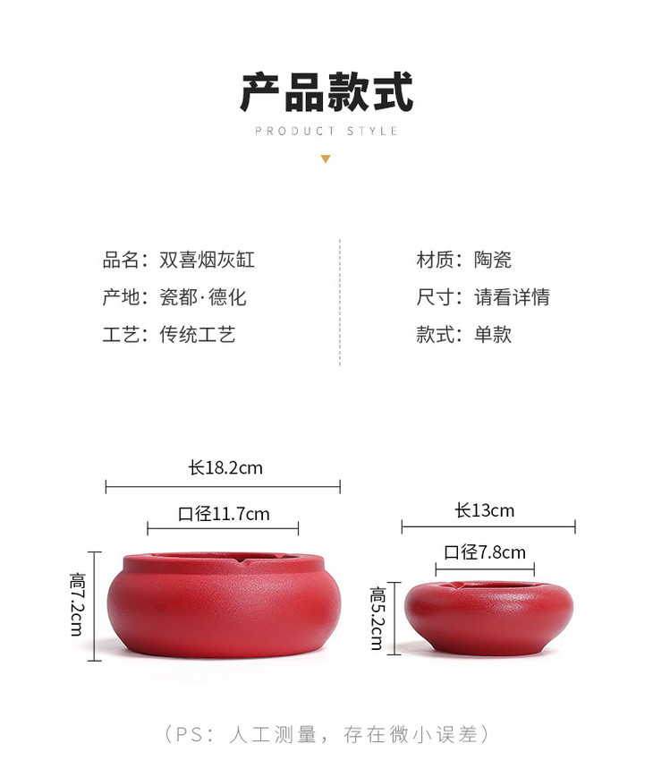 喜庆用品结婚红色陶瓷烟灰缸双喜中式复古潮流客厅时尚