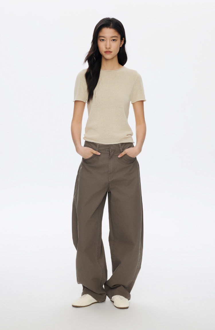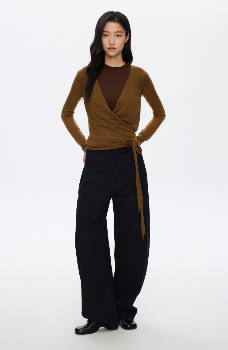 Oneup系带薄料直筒裤