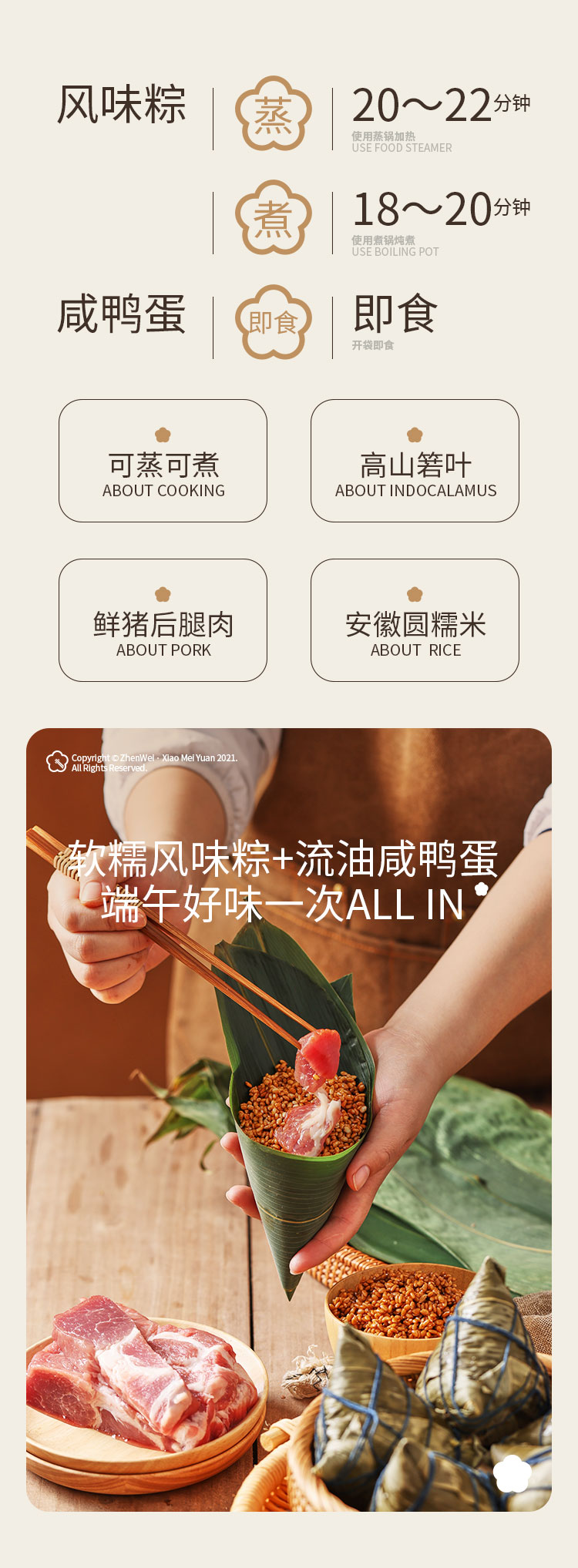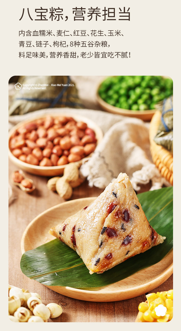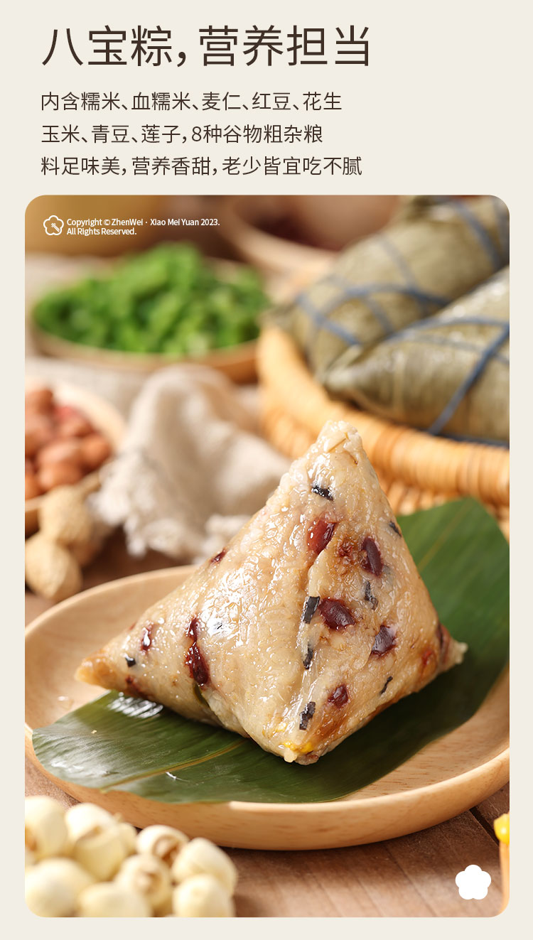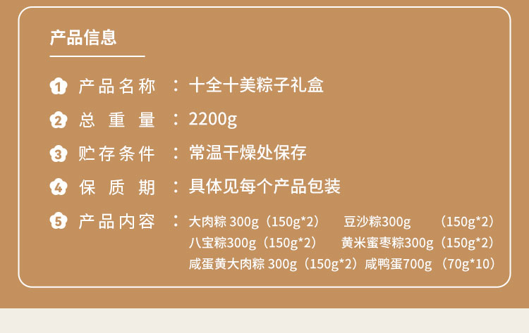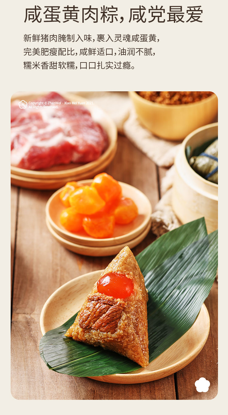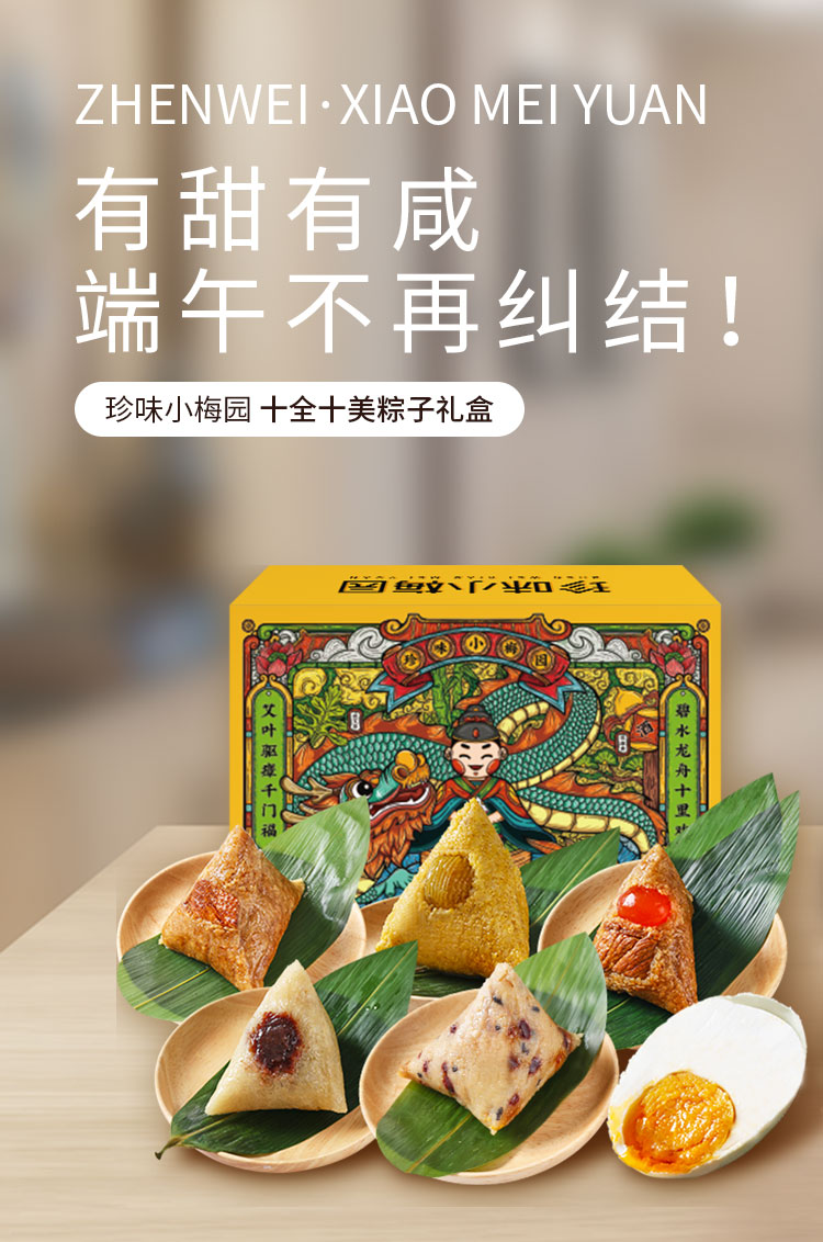 珍味小梅园 十全十美粽子礼盒 2200g/盒咸蛋黄大肉粽黄米蜜枣粽豆沙粽八宝粽以及10颗咸鸭蛋上海发货