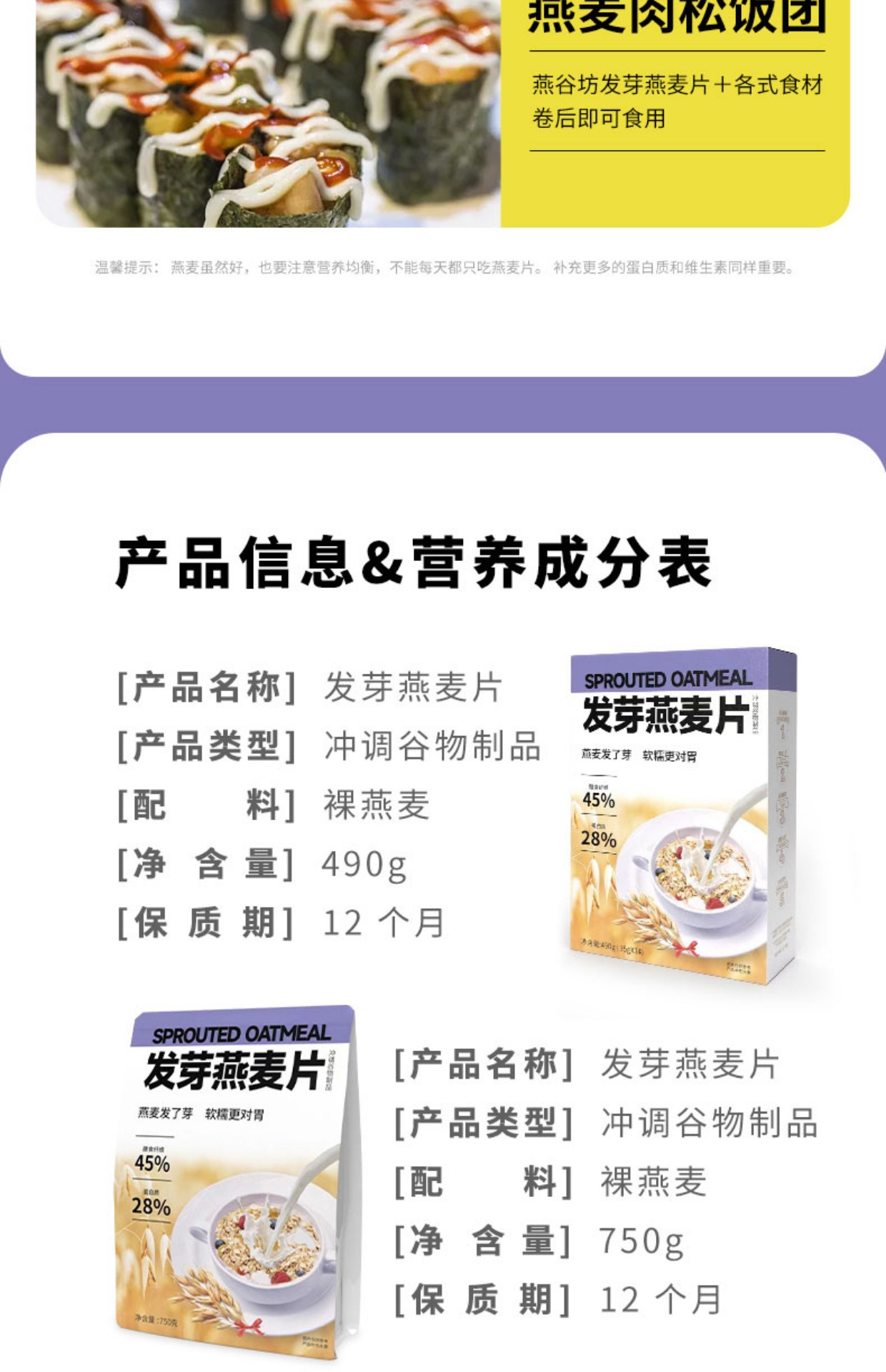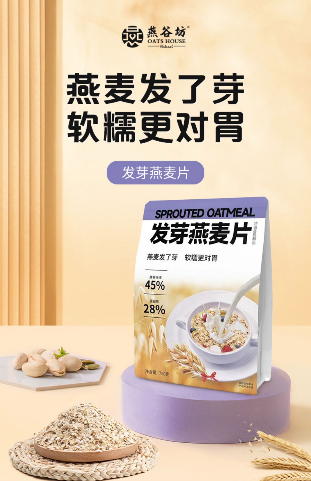 燕谷坊牌发芽燕麦片750g/袋
