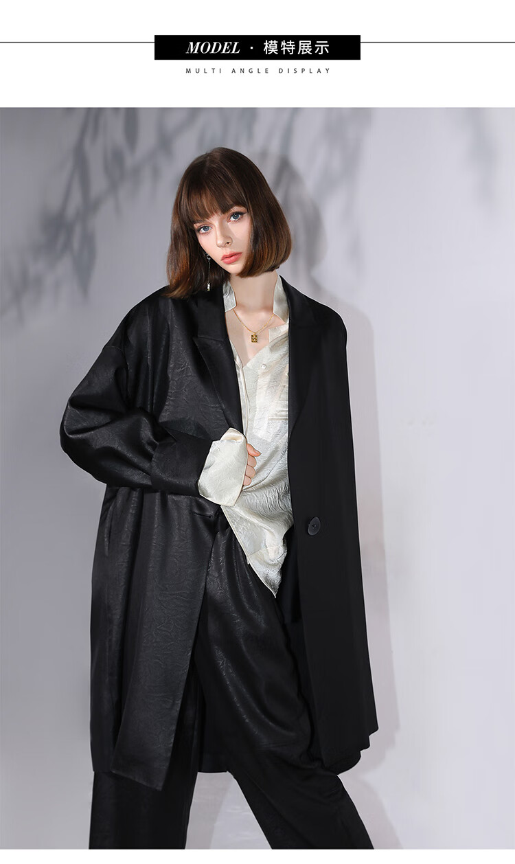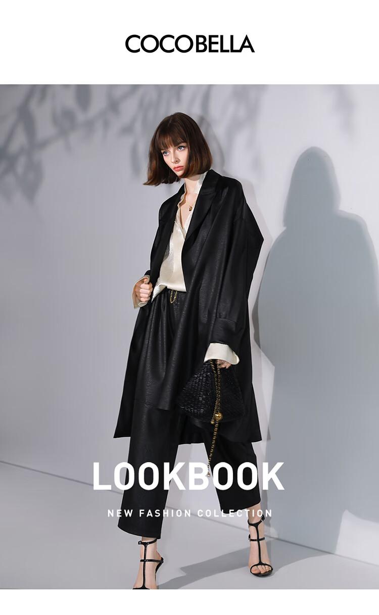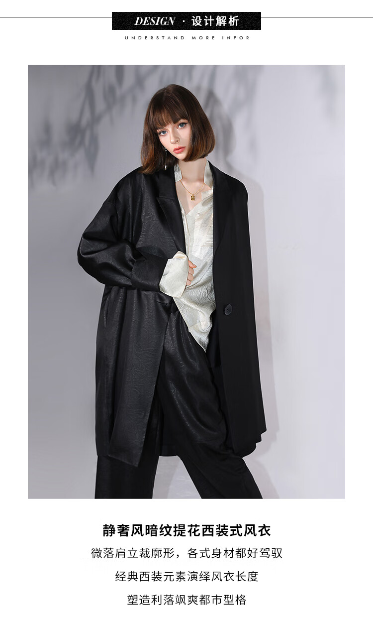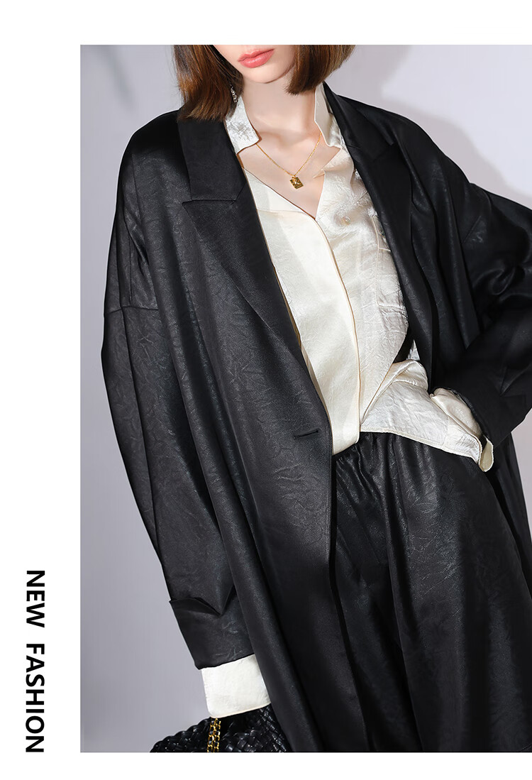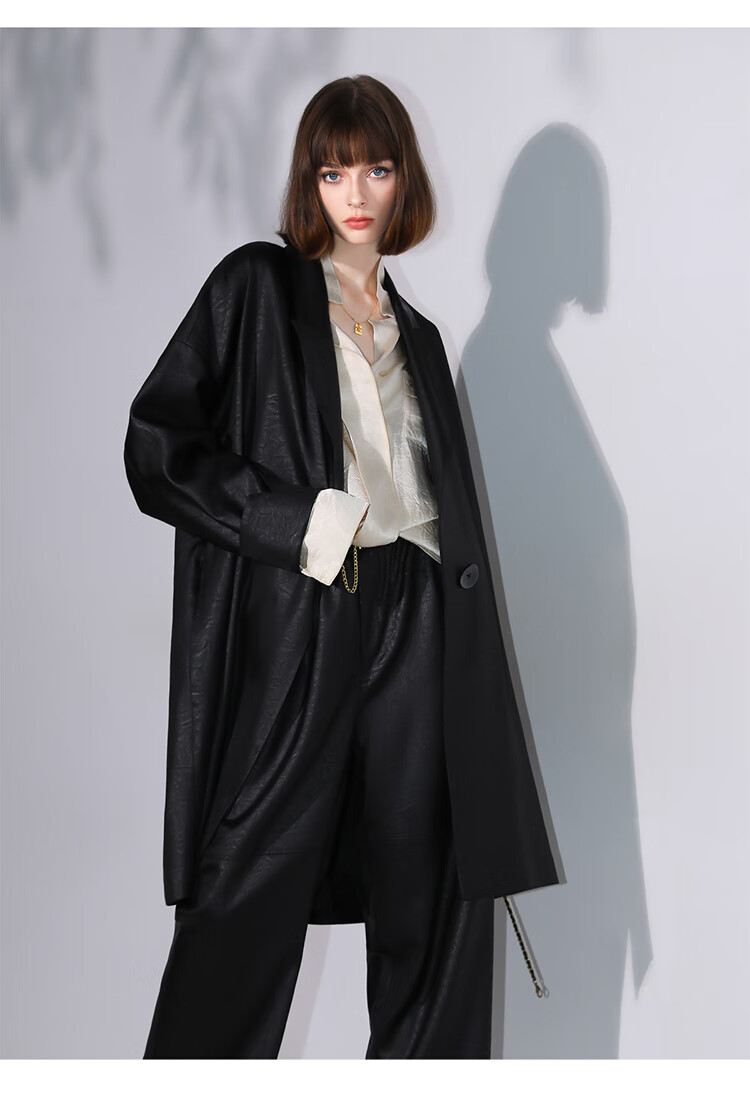 COCOBELLA静奢风折纸压花垂坠风衣女长款休闲西装外套WN3008