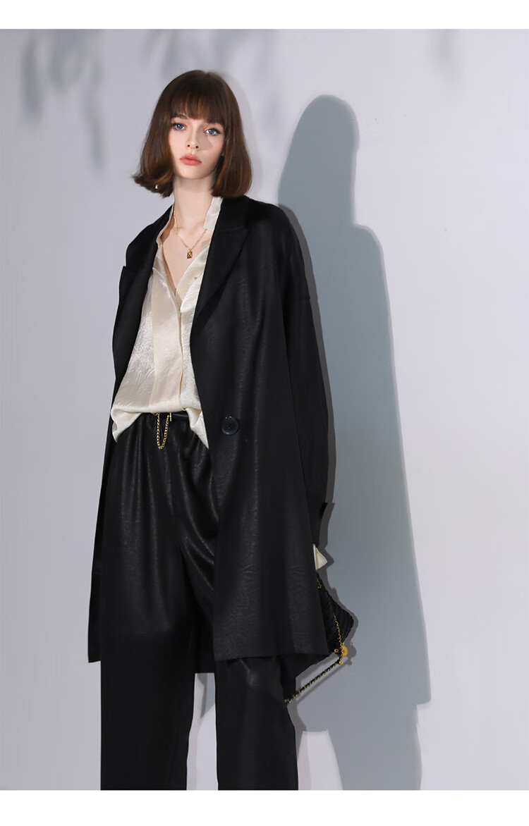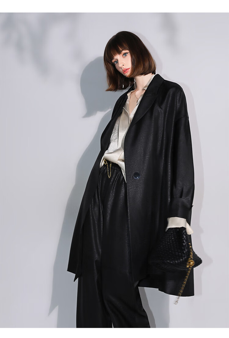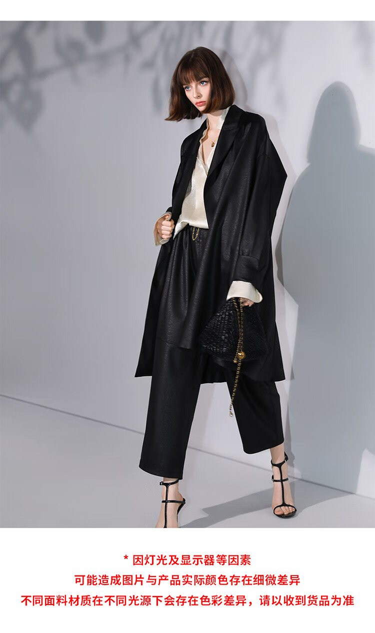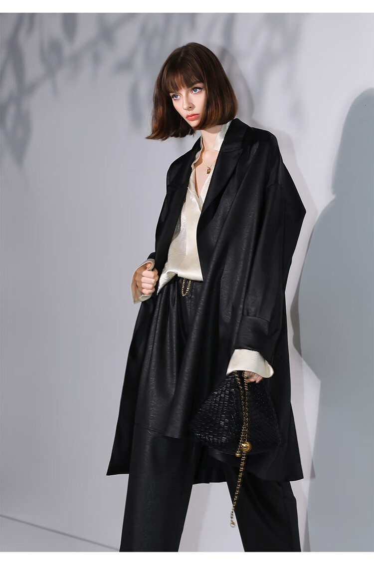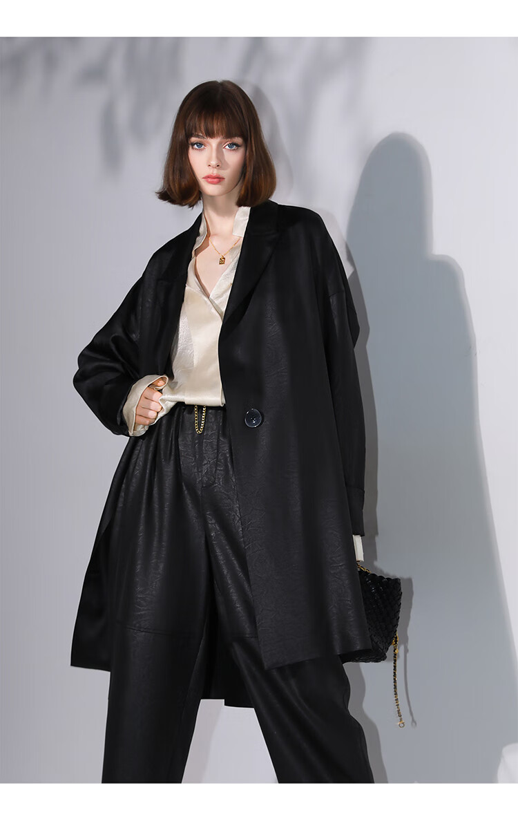COCOBELLA静奢风折纸压花垂坠风衣女长款休闲西装外套WN3008
