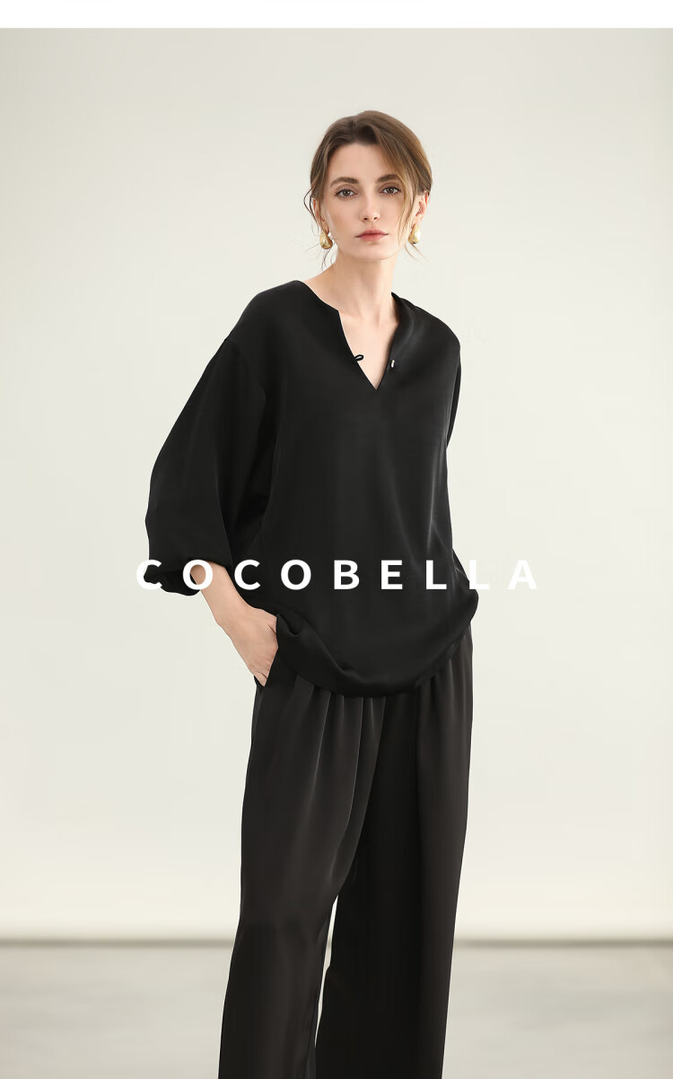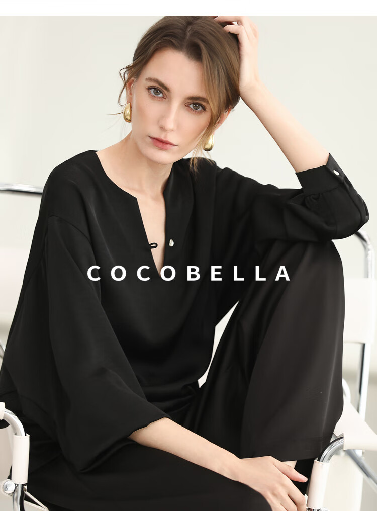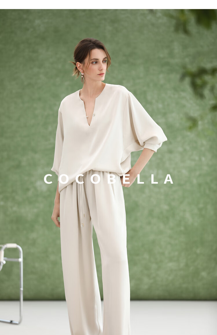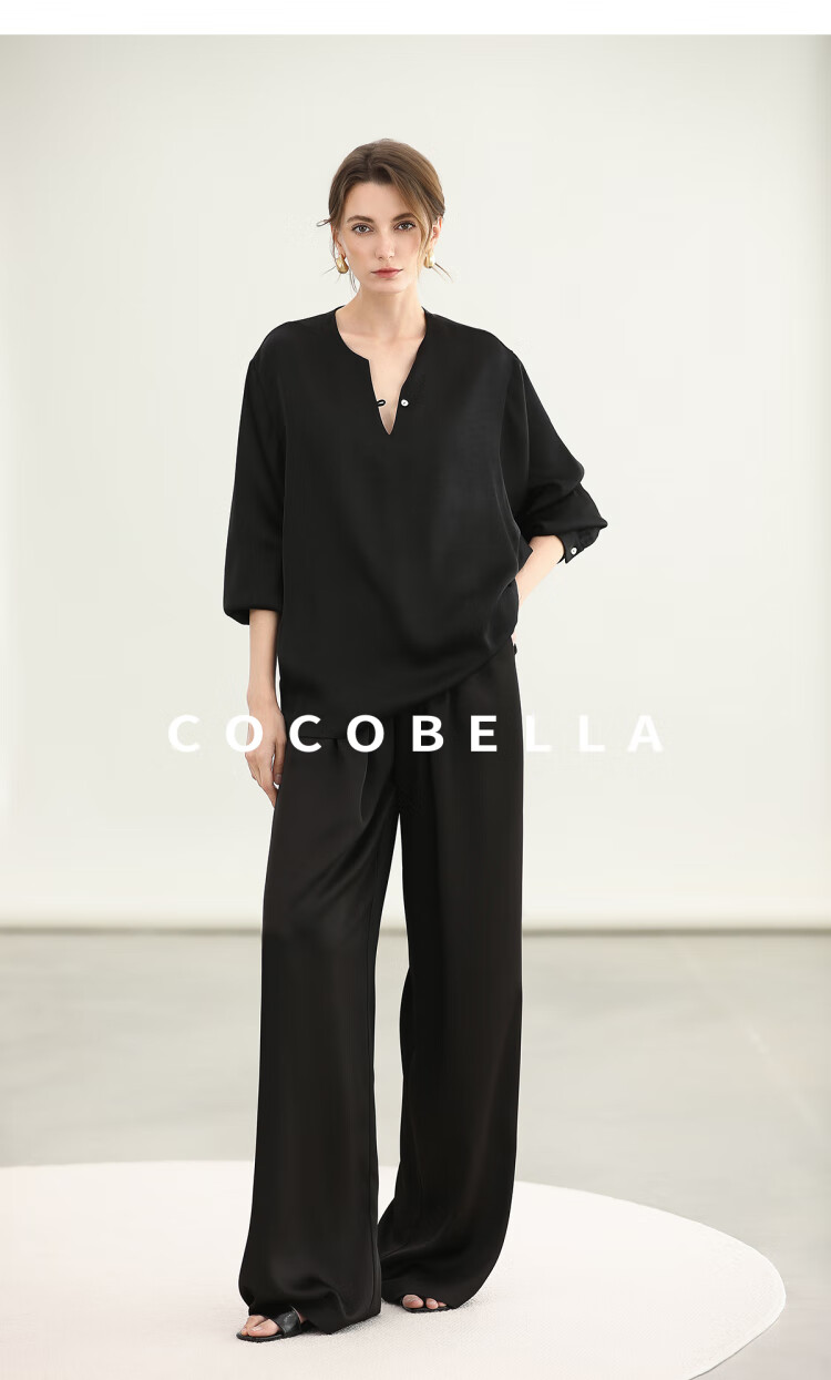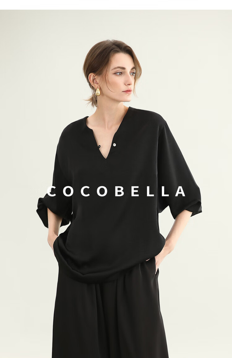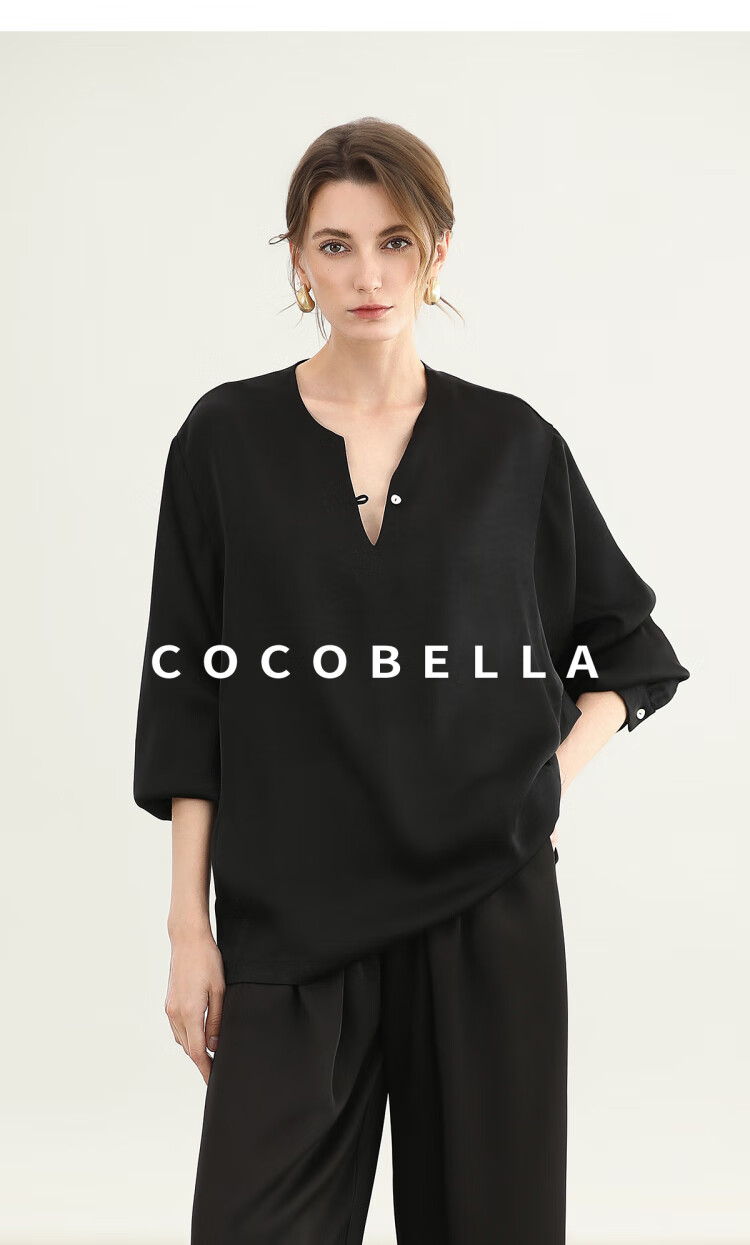 COCOBELLA奢感丝光缎面极简风衬衫女夏气质OL通勤上衣SR7066