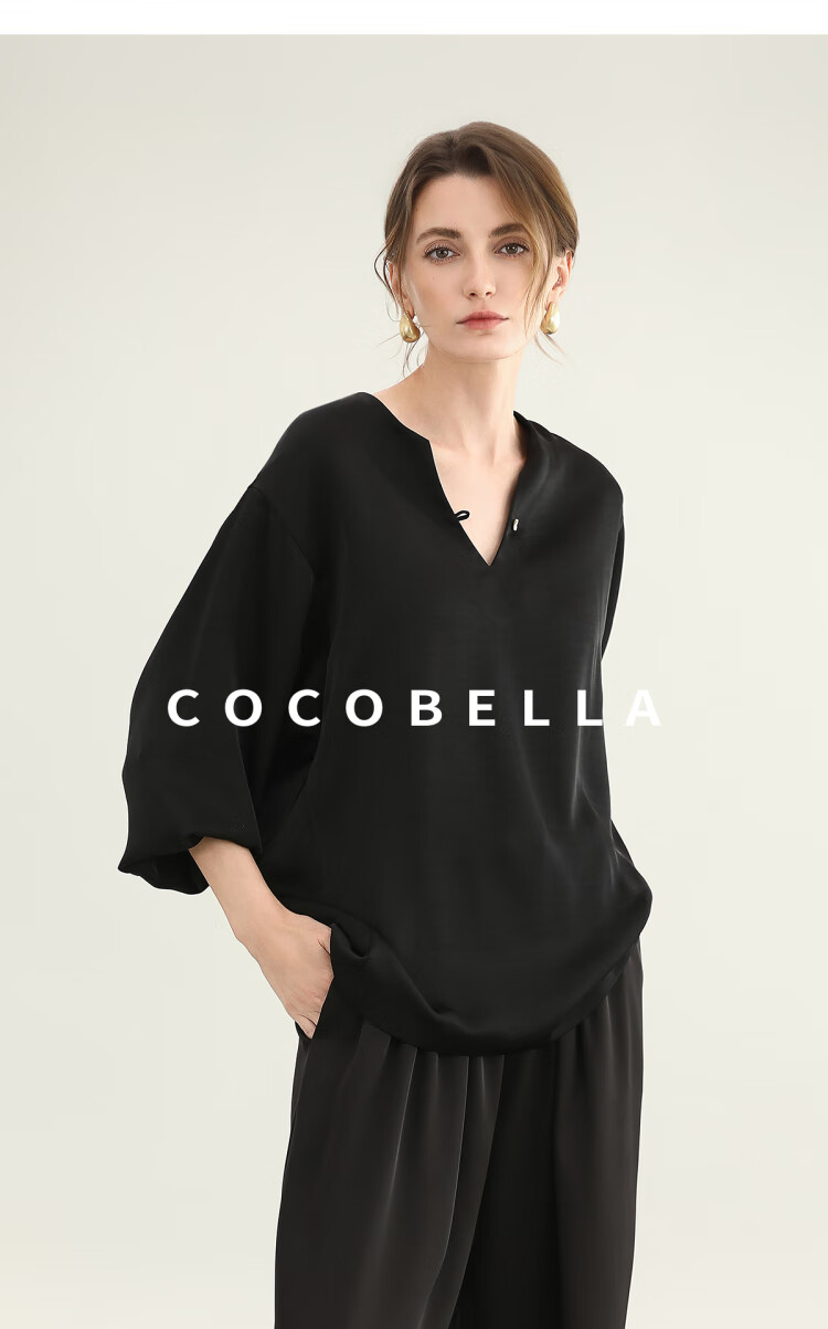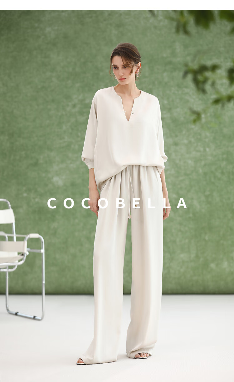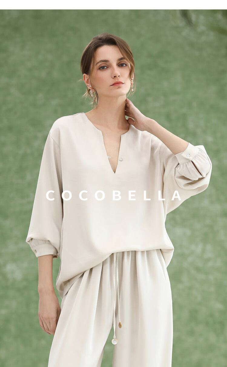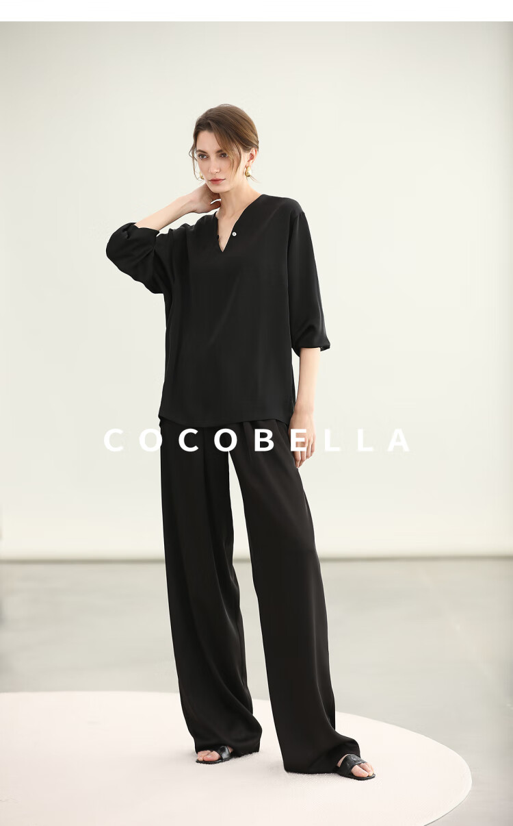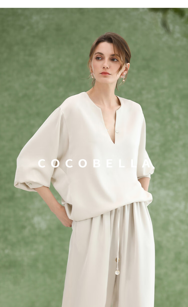 COCOBELLA奢感丝光缎面极简风衬衫女夏气质OL通勤上衣SR7066