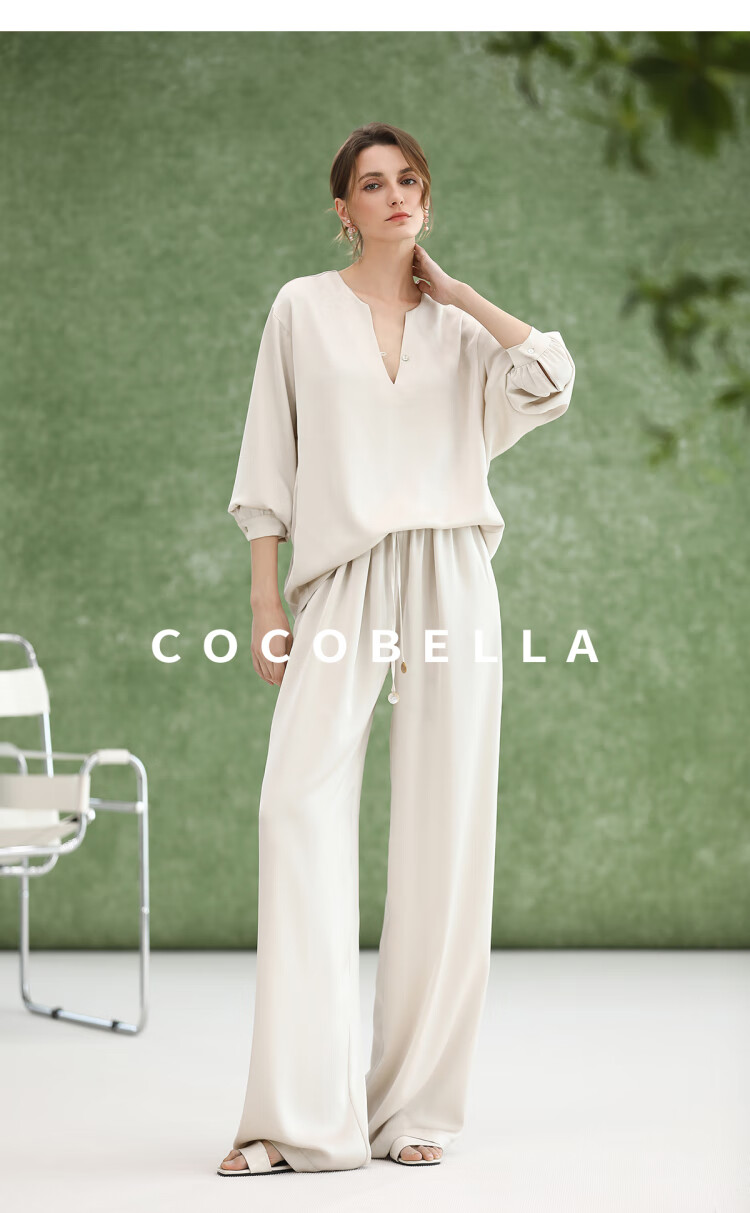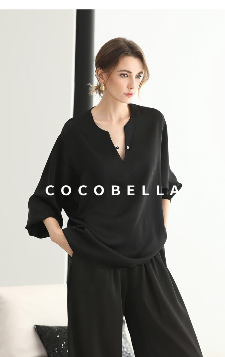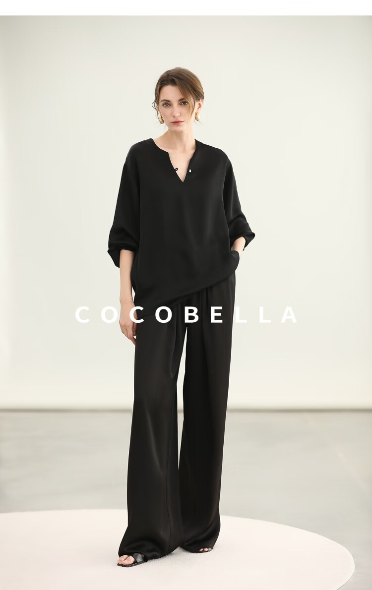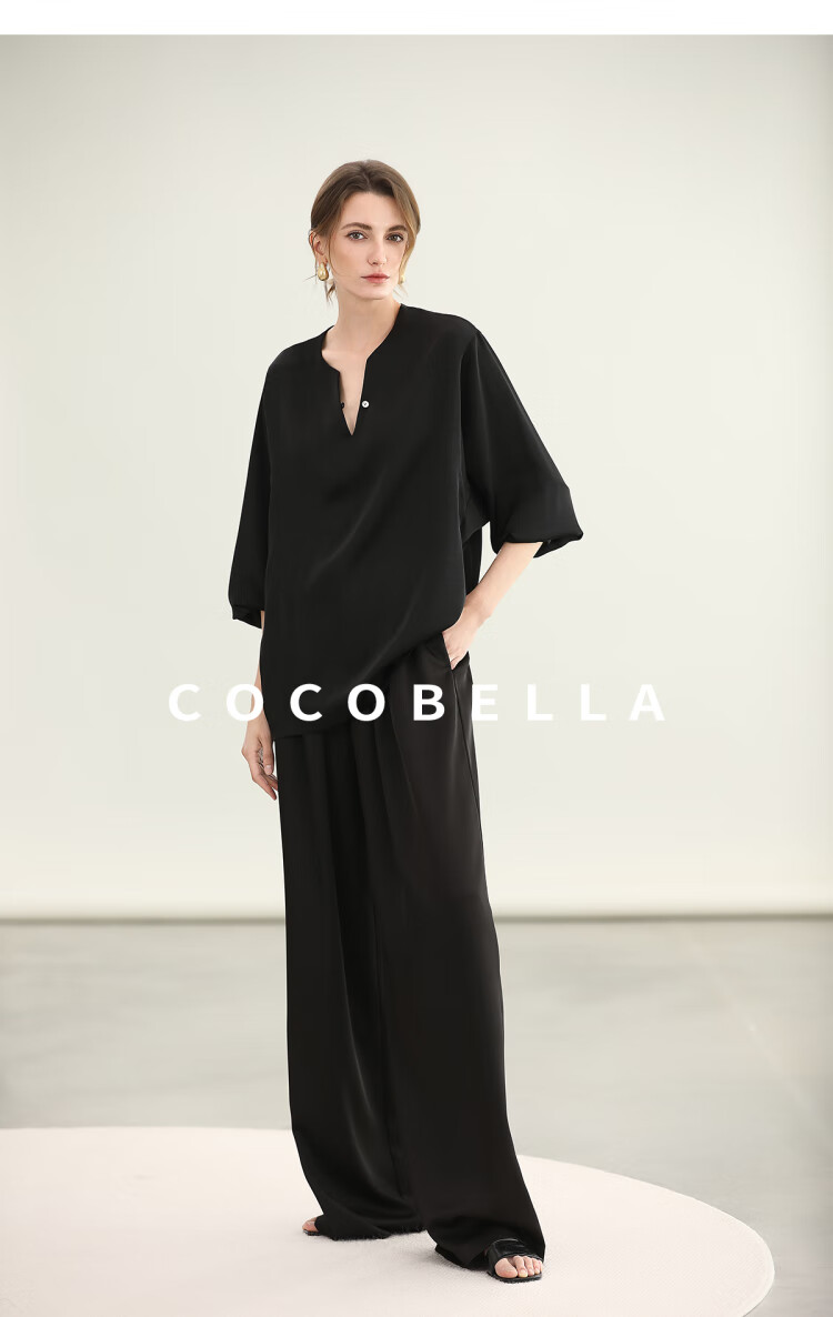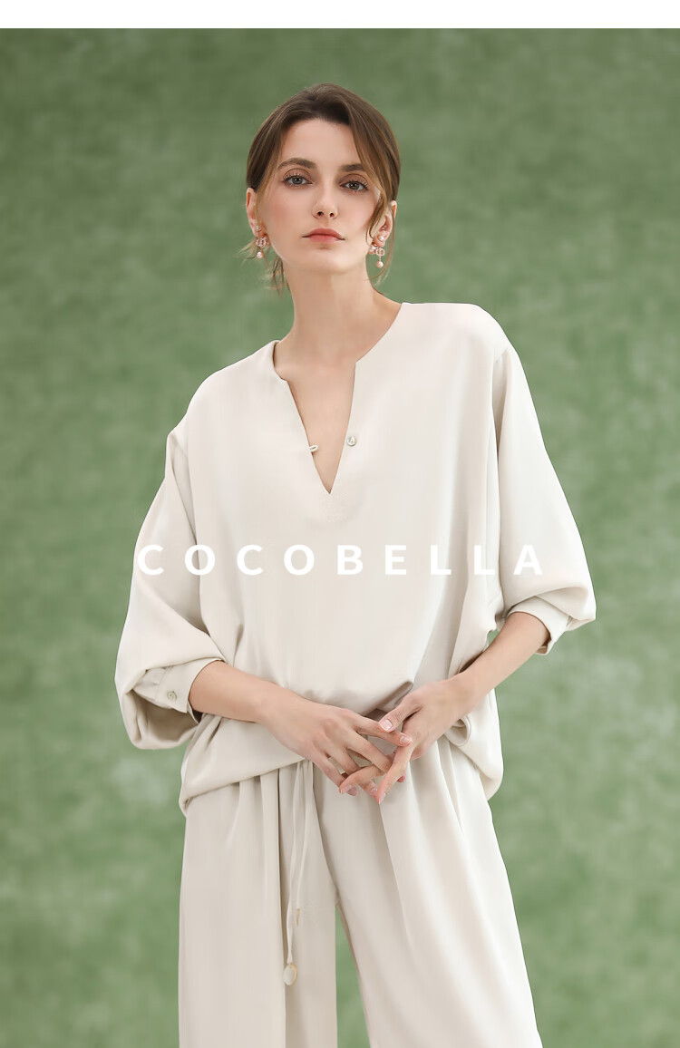 COCOBELLA奢感丝光缎面极简风衬衫女夏气质OL通勤上衣SR7066