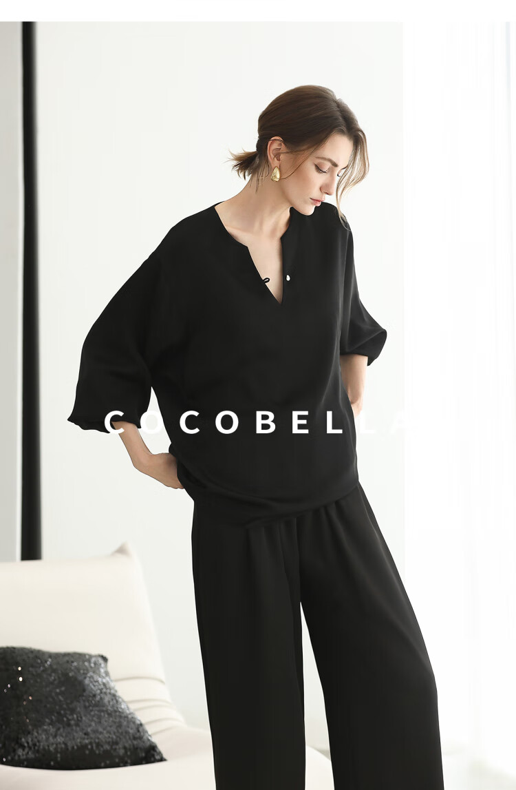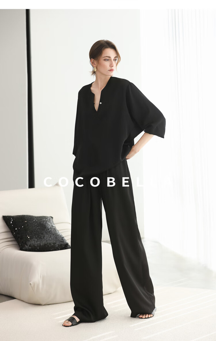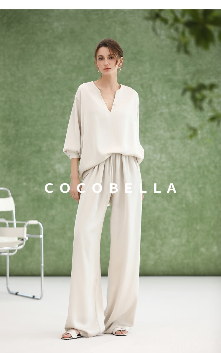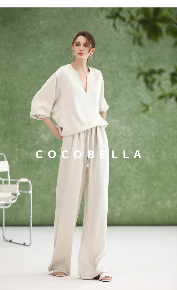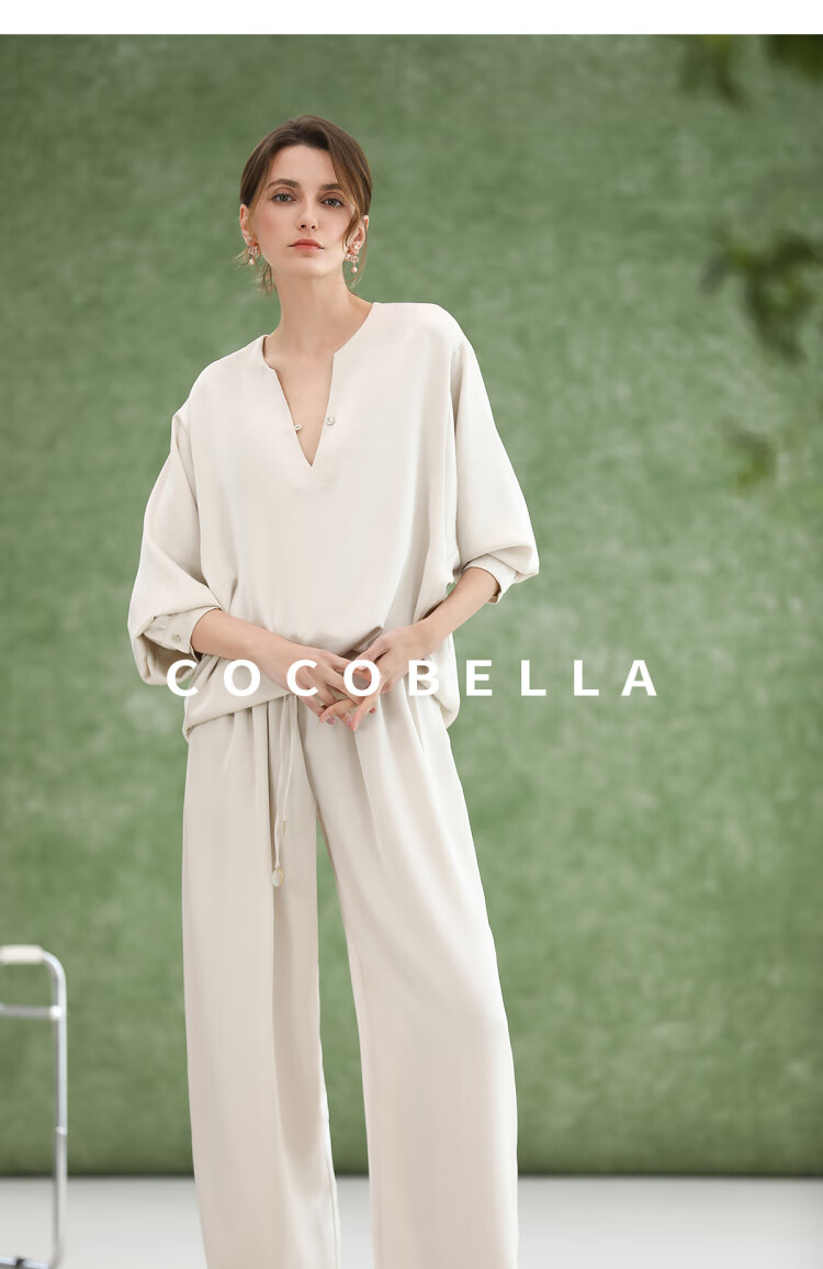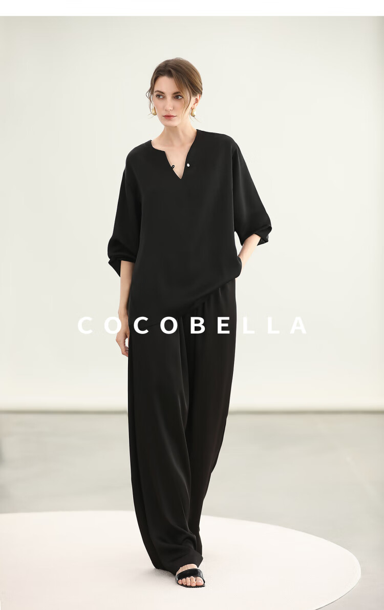 COCOBELLA奢感丝光缎面极简风衬衫女夏气质OL通勤上衣SR7066