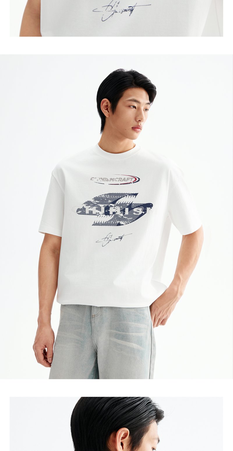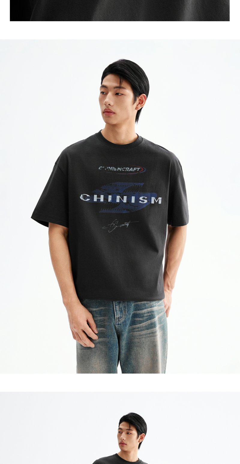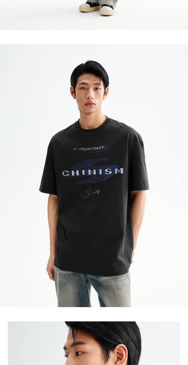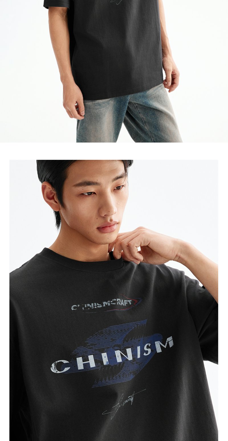CHINISM赤尘 破坏感印花重磅短袖T恤男夏季半袖