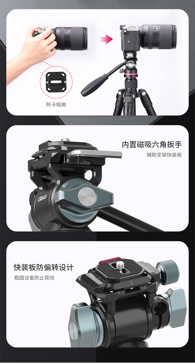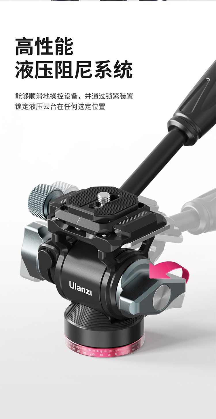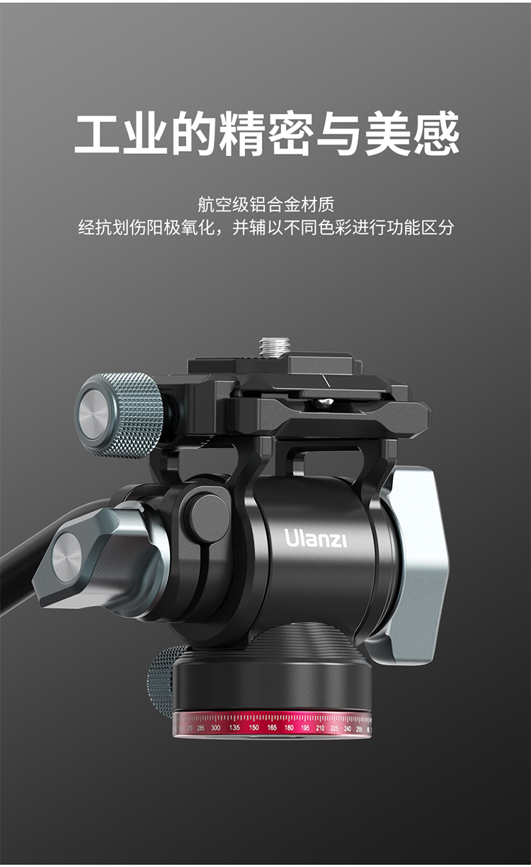 Ulanzi优篮子 U-190小型液压金属云台阻尼轨道滑轨手柄便携微单相机通用专业旅行摄影拍照短视频直播三角架