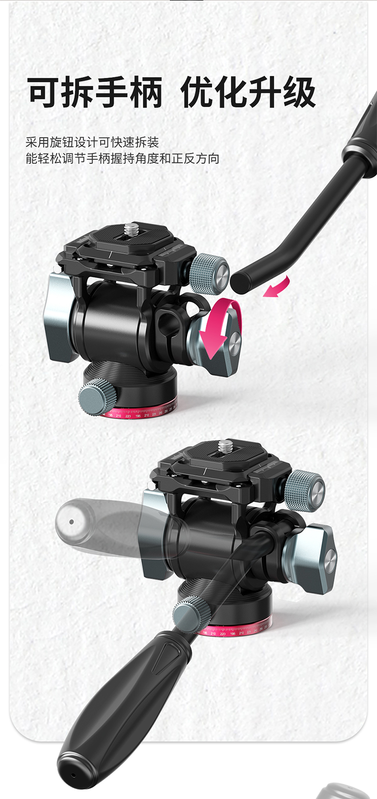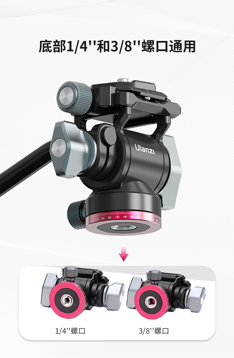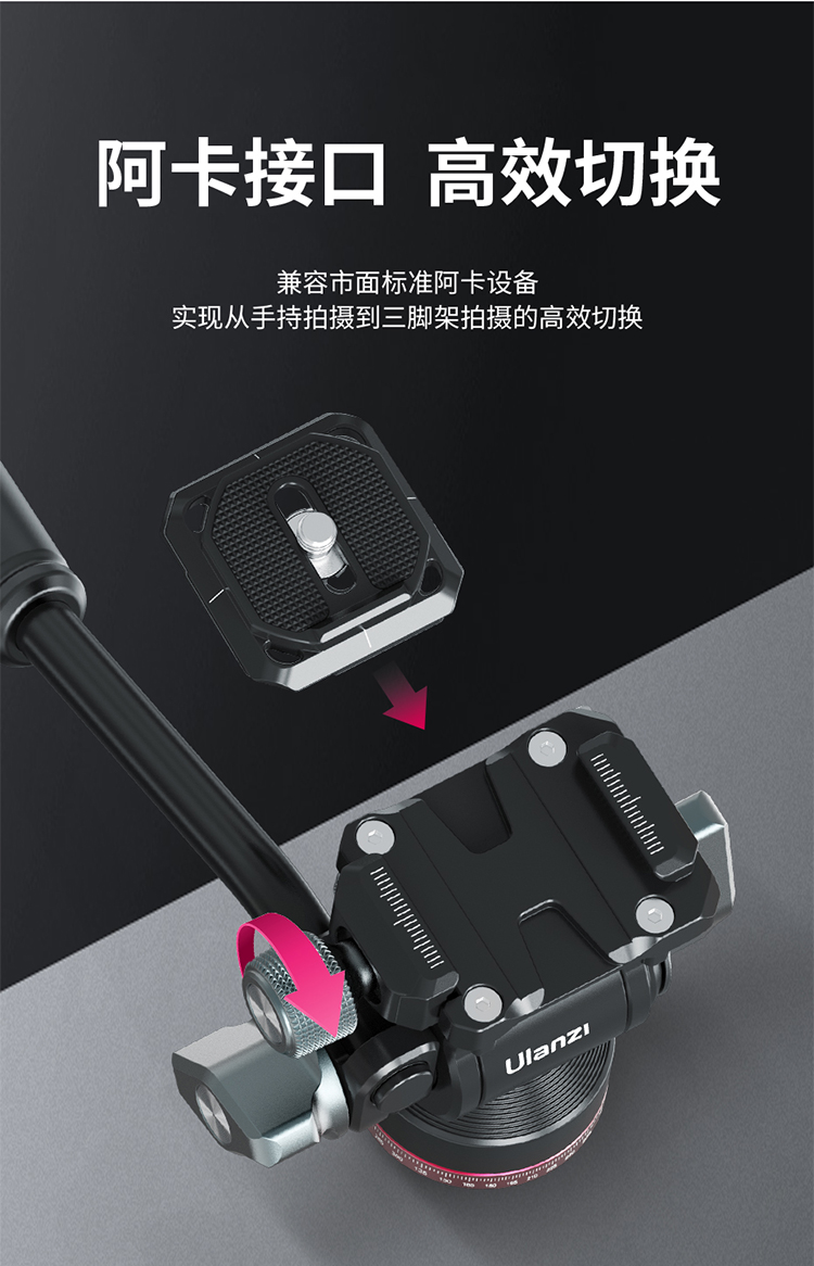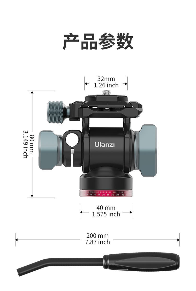 Ulanzi优篮子 U-190小型液压金属云台阻尼轨道滑轨手柄便携微单相机通用专业旅行摄影拍照短视频直播三角架