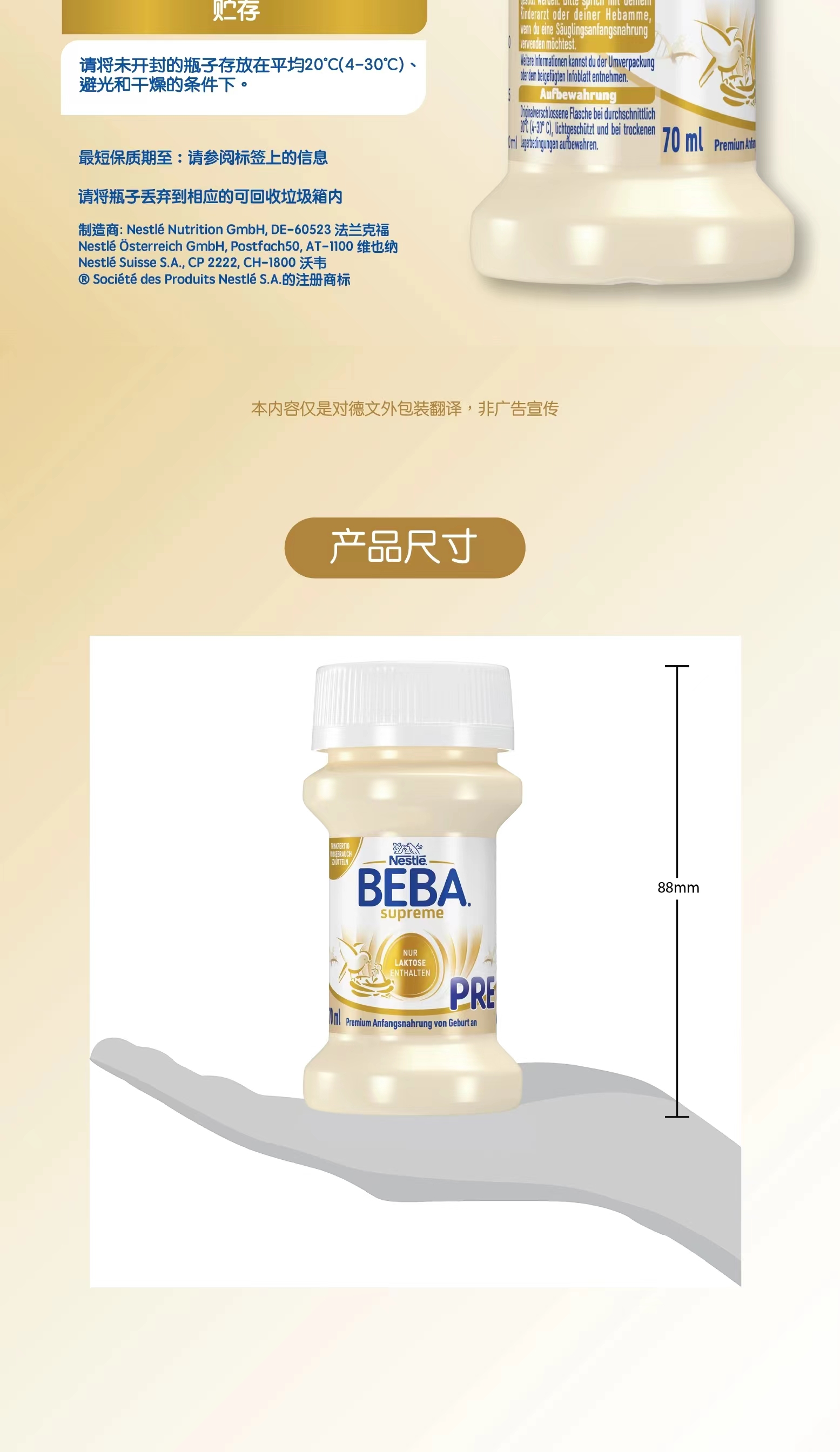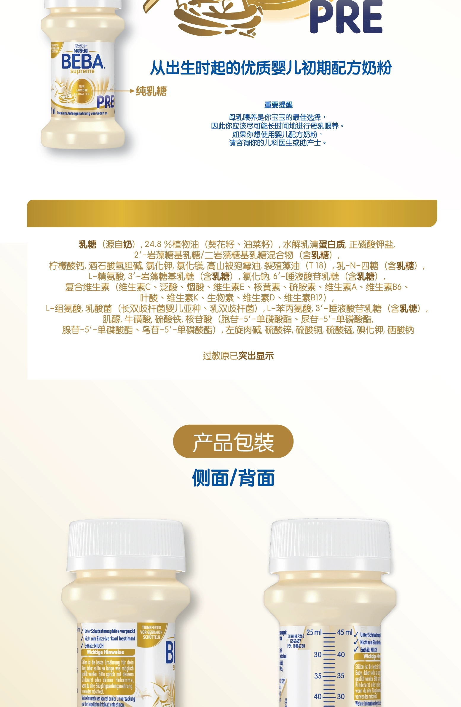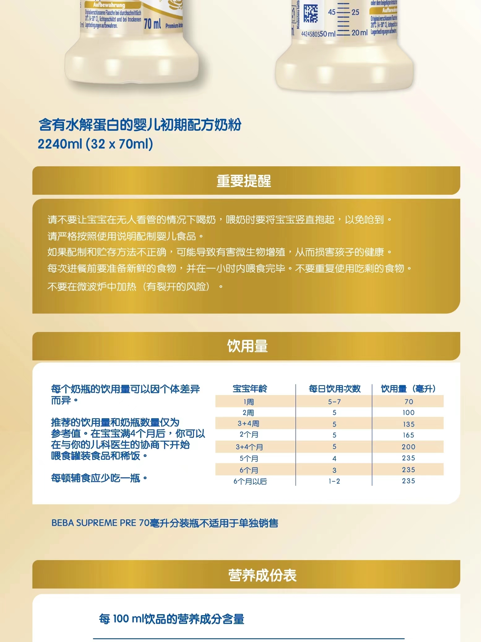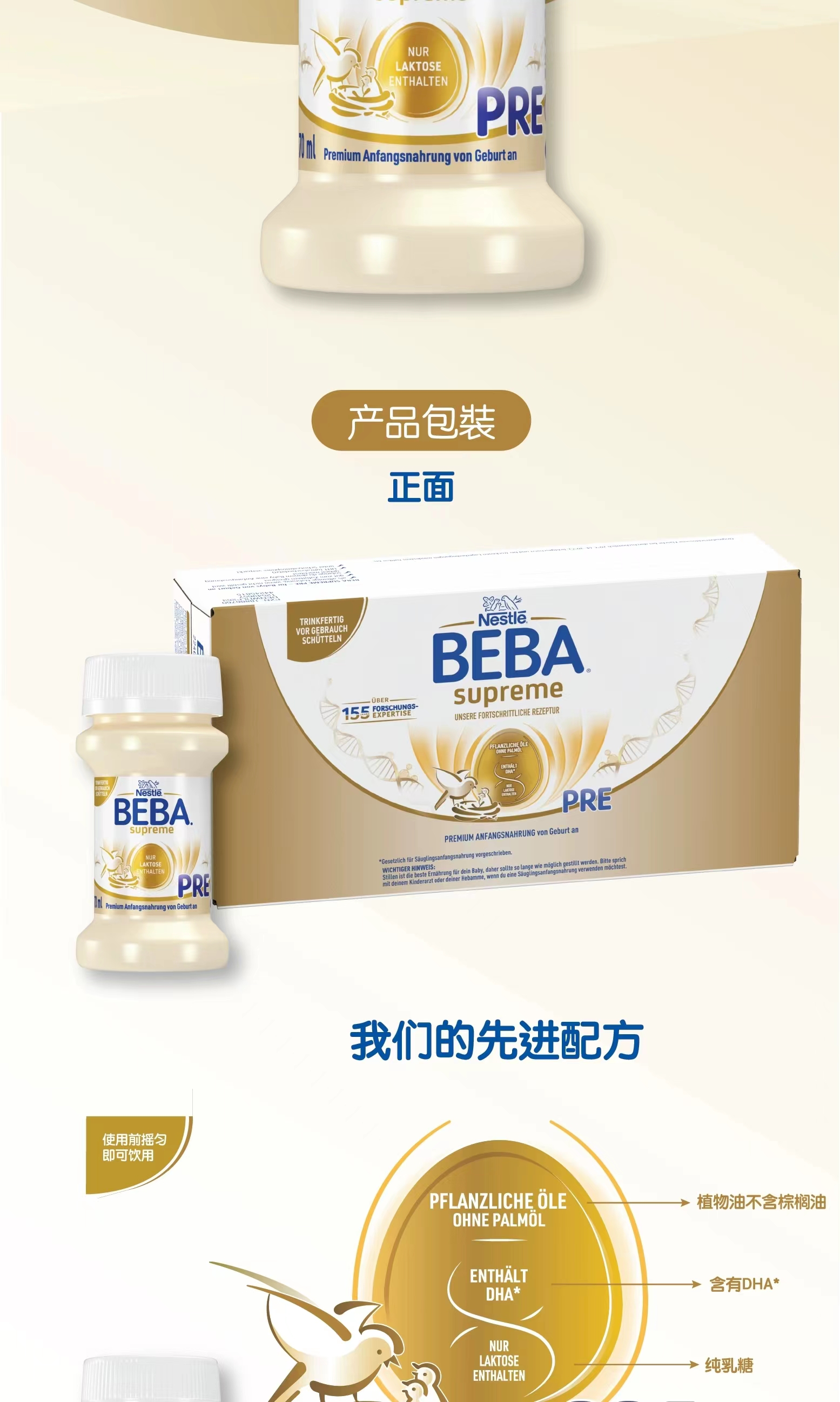 【系统升级中,微信下单优惠】 顺丰常温发货,跨境商品|德国雀巢BEBA新版6种HMO婴幼儿配方液态奶水奶 32瓶*70ml/箱