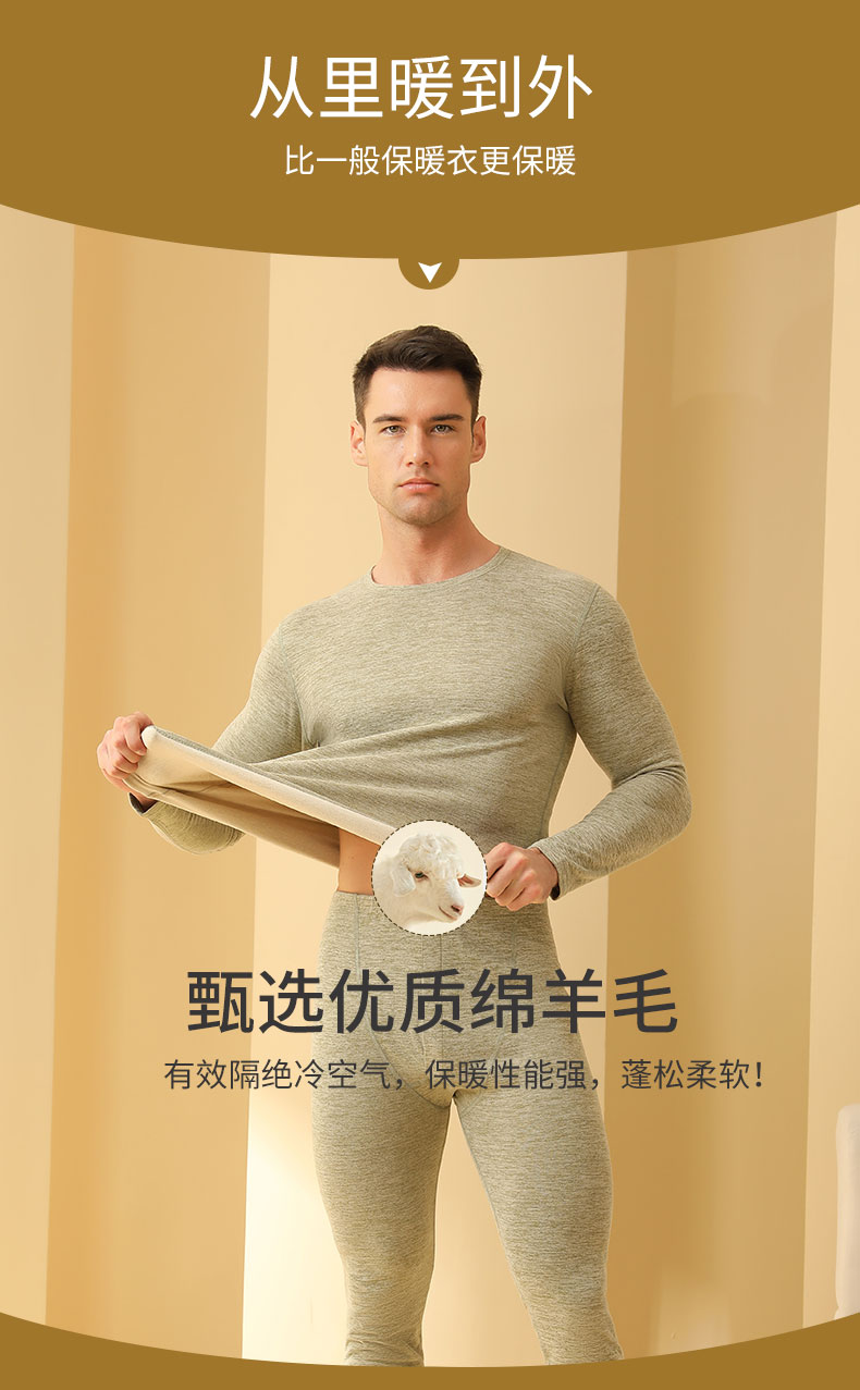 秋冬德绒保暖内衣羊毛蚕丝秋衣秋裤炫彩情侣打底套装
