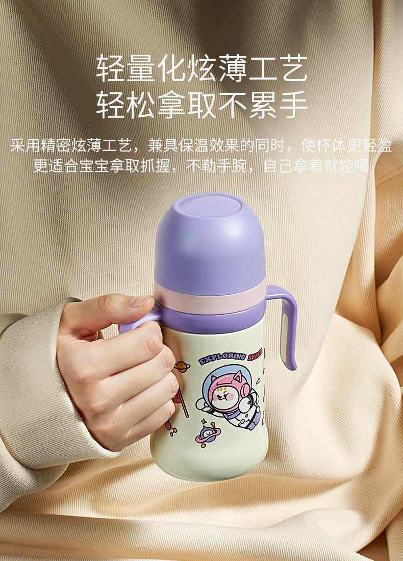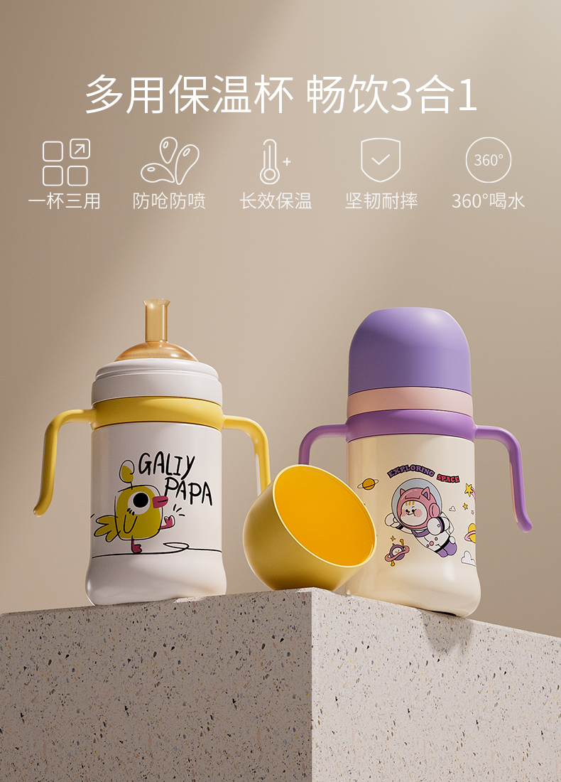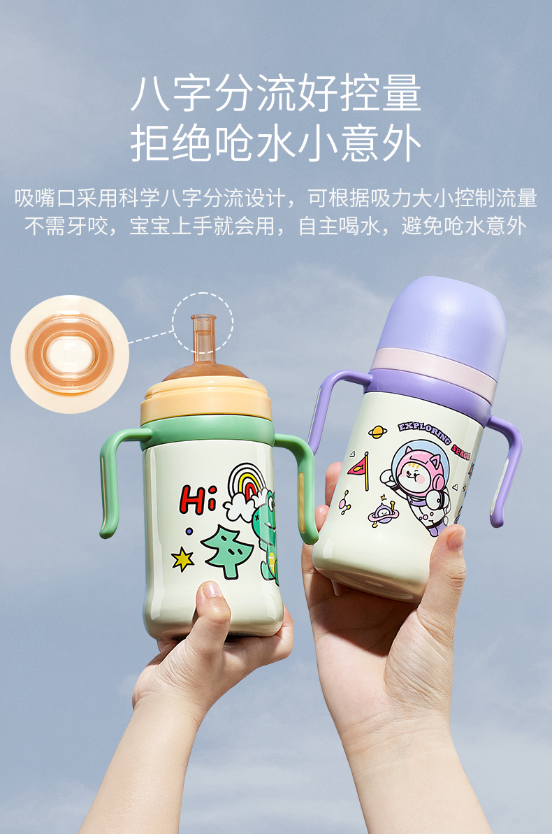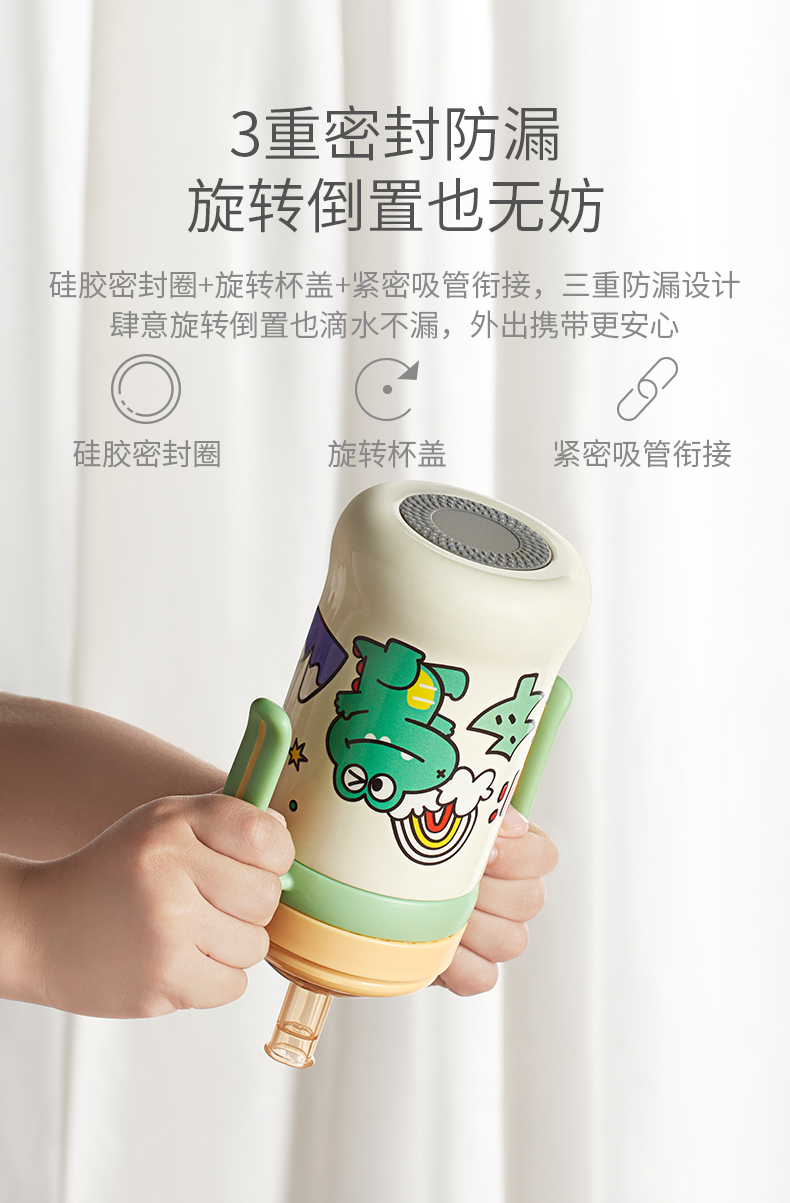 科巢儿童保温杯带吸管婴幼儿鸭嘴学饮杯宝宝一岁以上防喷溅奶瓶外