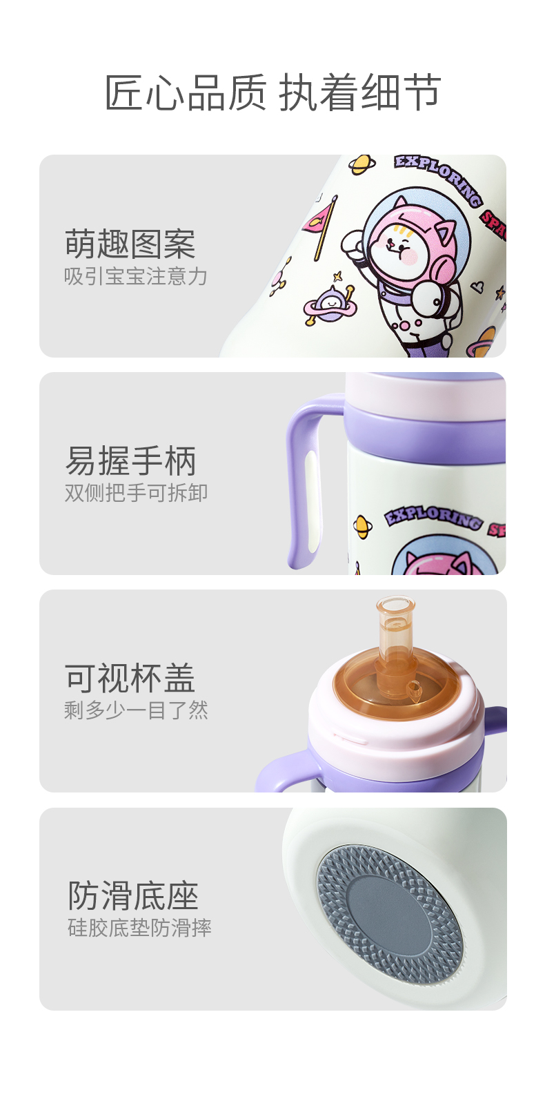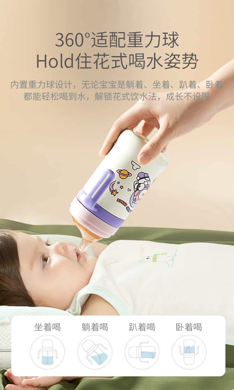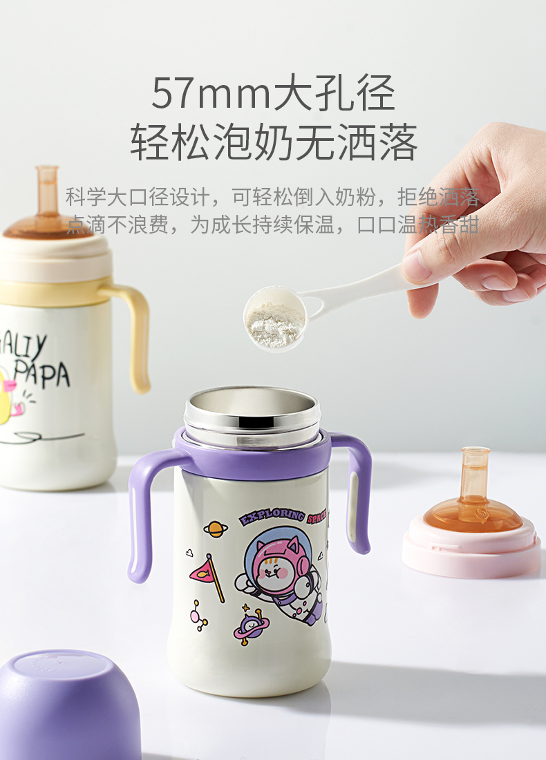 科巢儿童保温杯带吸管婴幼儿鸭嘴学饮杯宝宝一岁以上防喷溅奶瓶外
