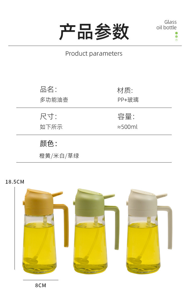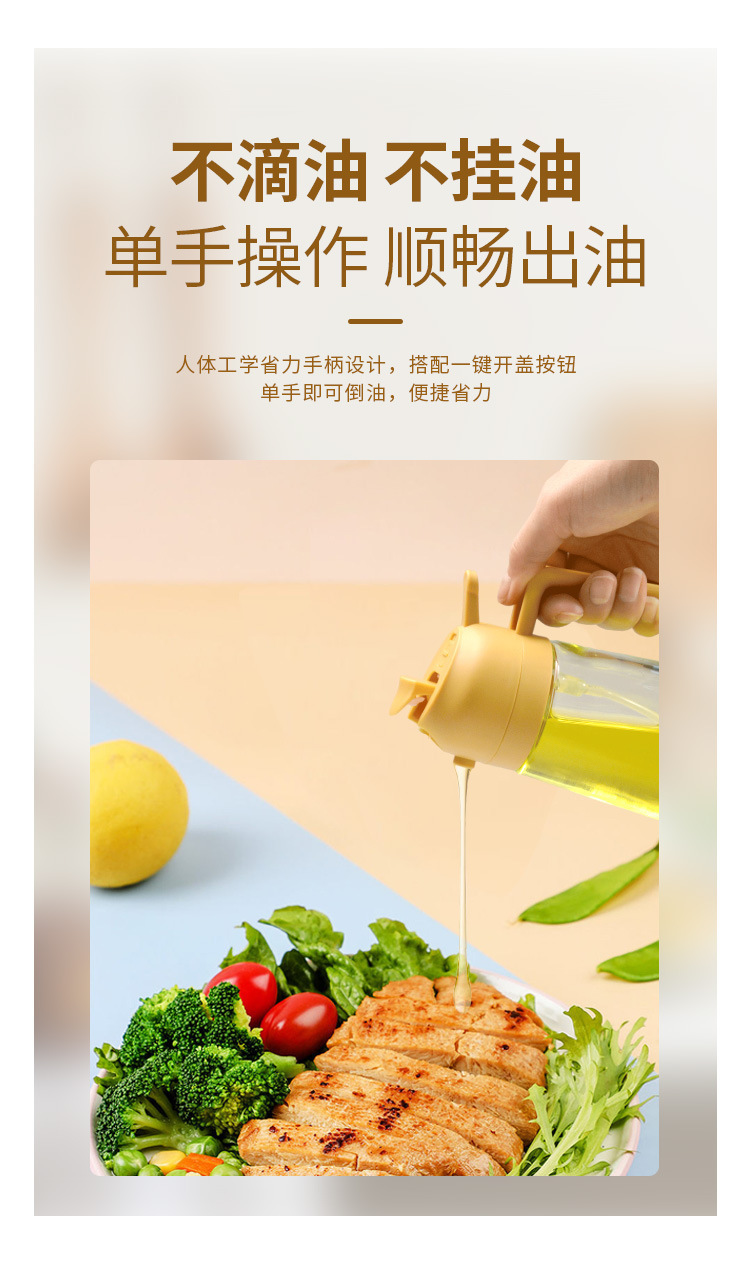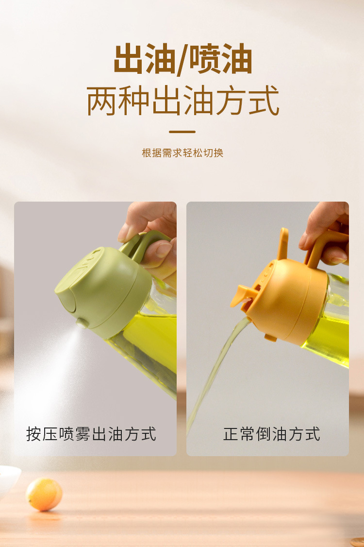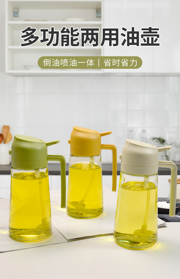 新款新品家用厨房多功能玻璃油壶调味瓶按压喷倒一体油瓶两用油壶