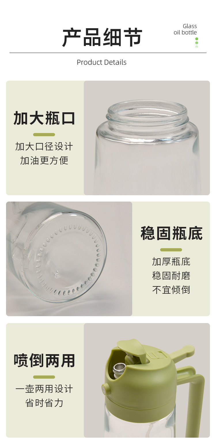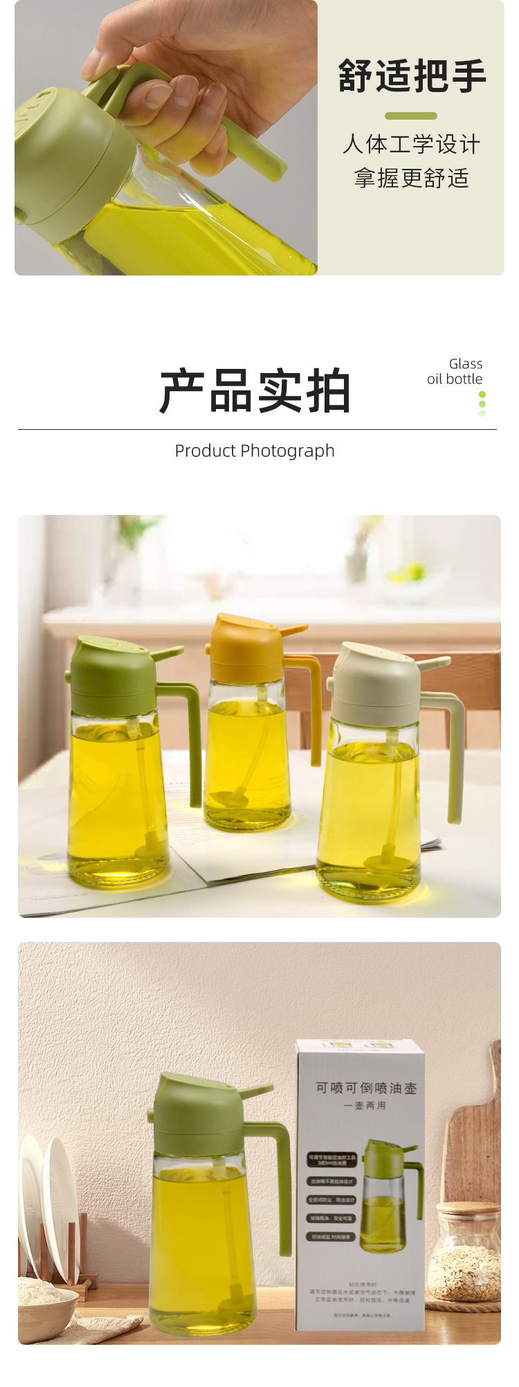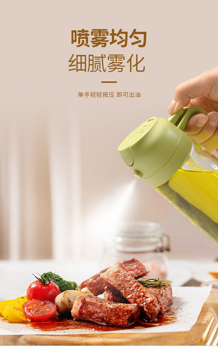 新款新品家用厨房多功能玻璃油壶调味瓶按压喷倒一体油瓶两用油壶