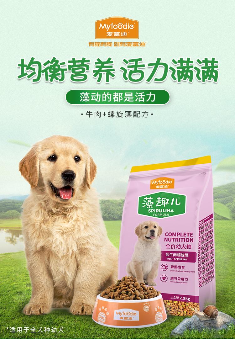 麦富迪狗粮 藻趣儿牛肉螺旋藻狗粮 金毛泰迪狗粮 藻趣儿幼犬粮2.5kg