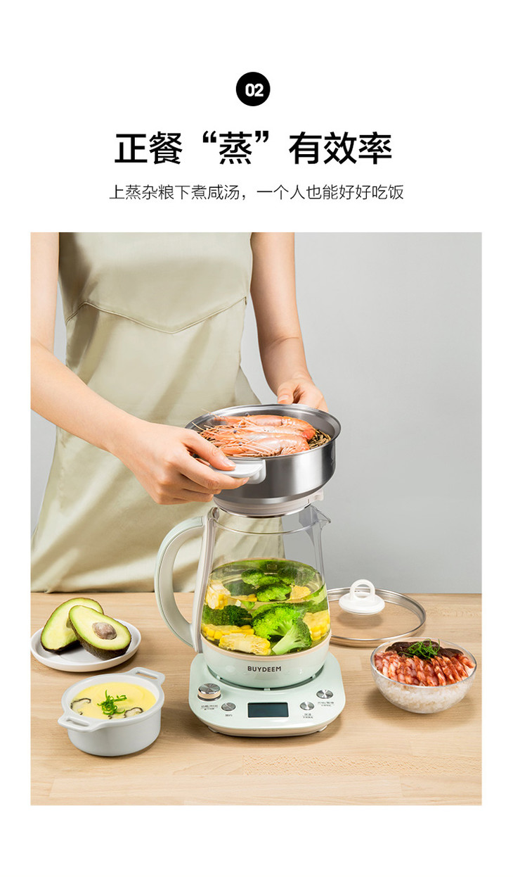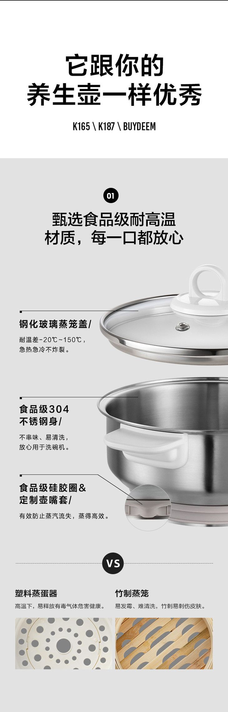 4、蒸笼与养生壶契合除使用食品级硅胶圈密封,防止蒸汽流失,效率更高