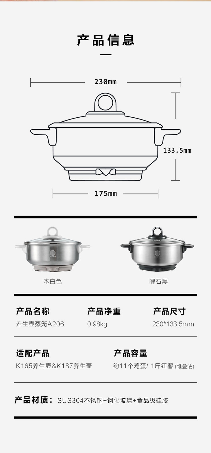 Buydeem/北鼎 养生壶配件K165/K187/K159T蒸笼 A206食品级不锈钢[福利品]
