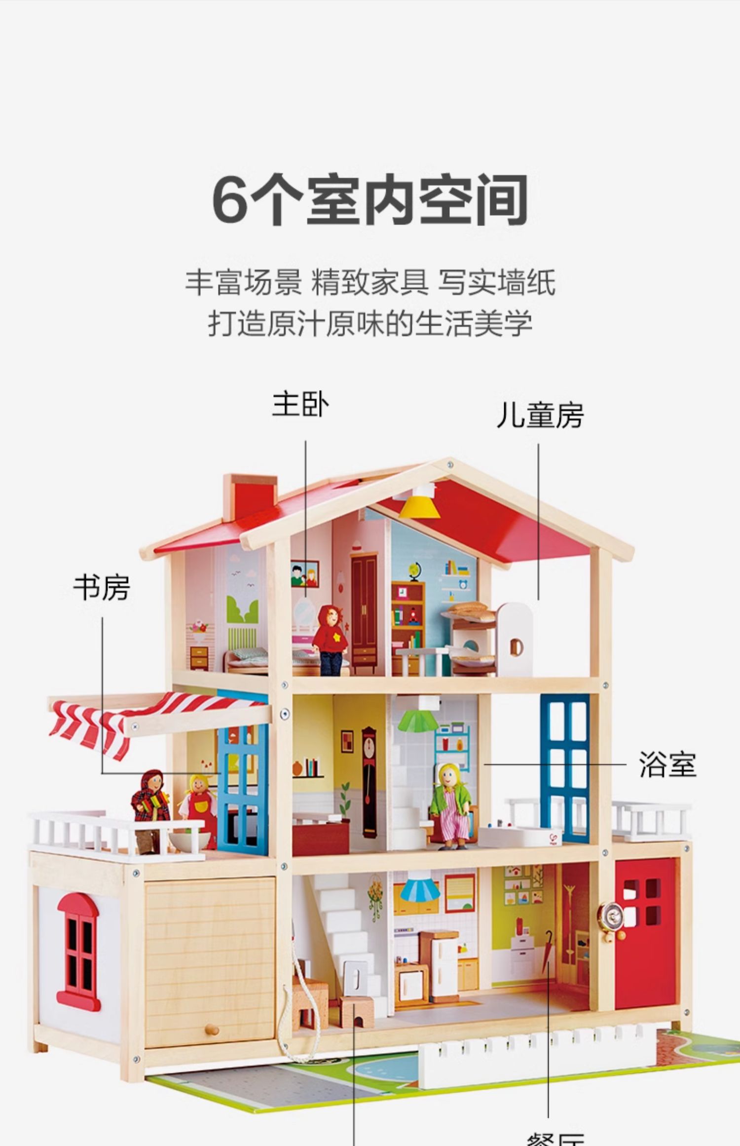 Hape我的豪华别墅过家家度假屋宝宝仿真娃娃屋女孩娃娃房玩具礼物