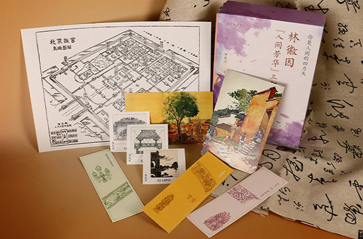 还赠送手绘边饰书签、精美藏书票、水彩明信片、故宫鸟瞰图……全是林徽因手绘作品,让你边看书边观赏她的艺术才能。